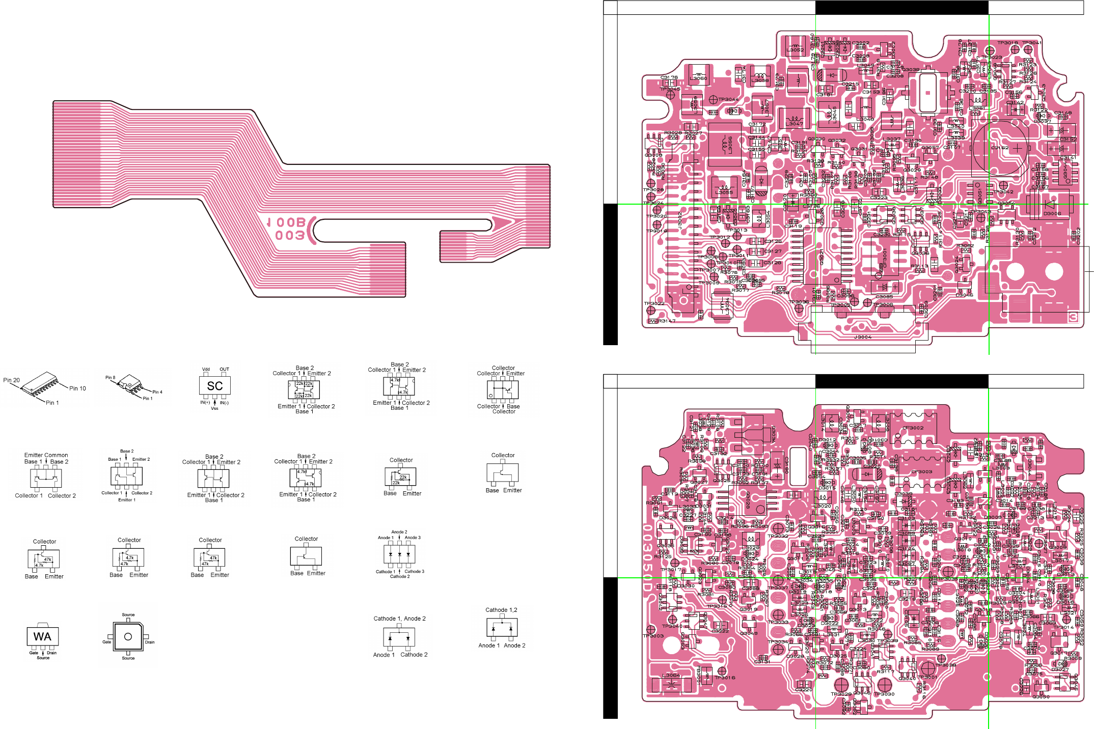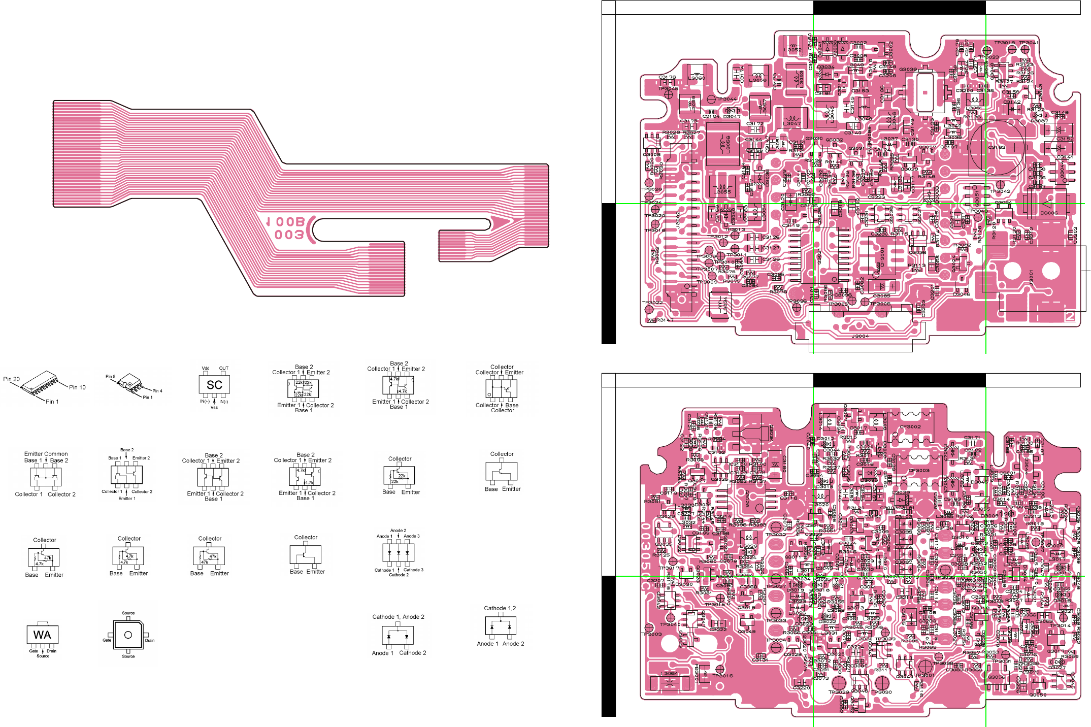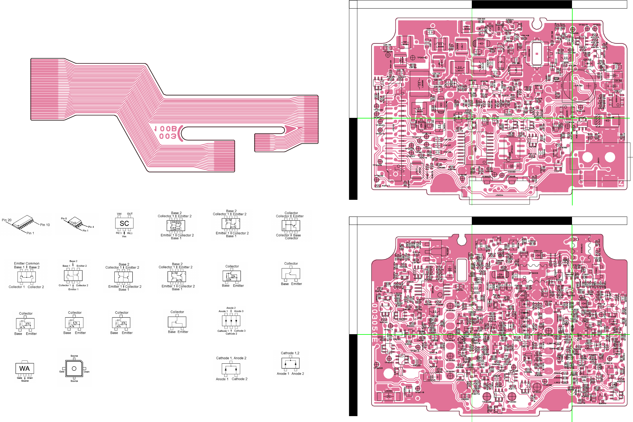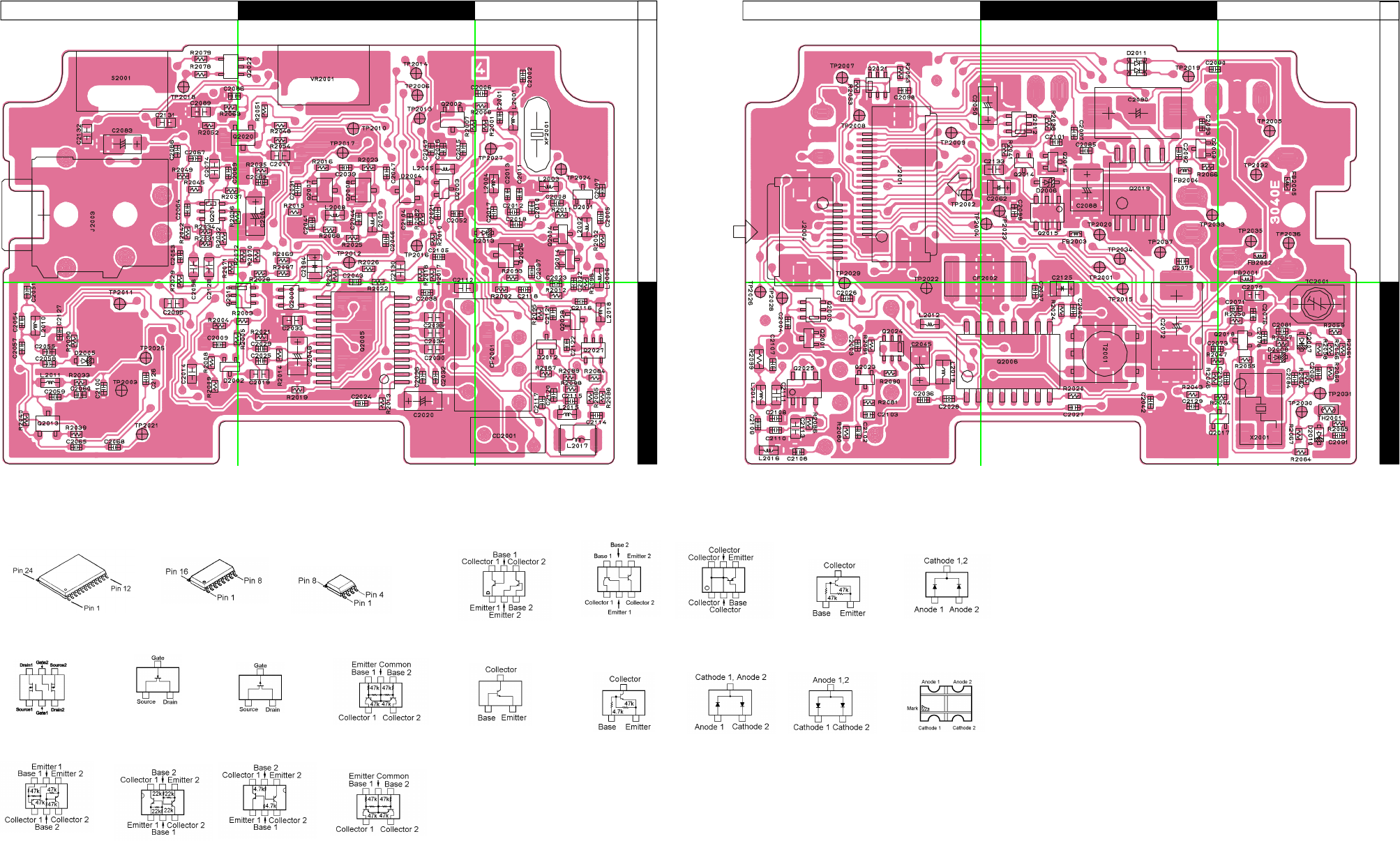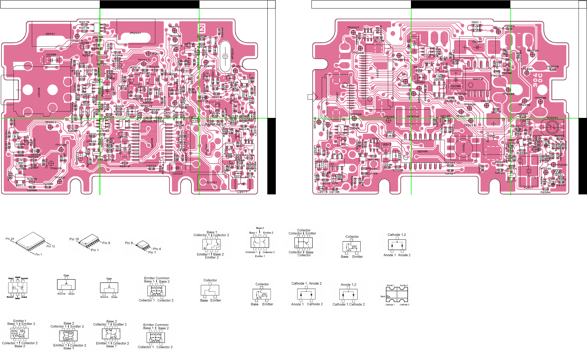 Two PCB layout diagrams provided for each double-sided board in