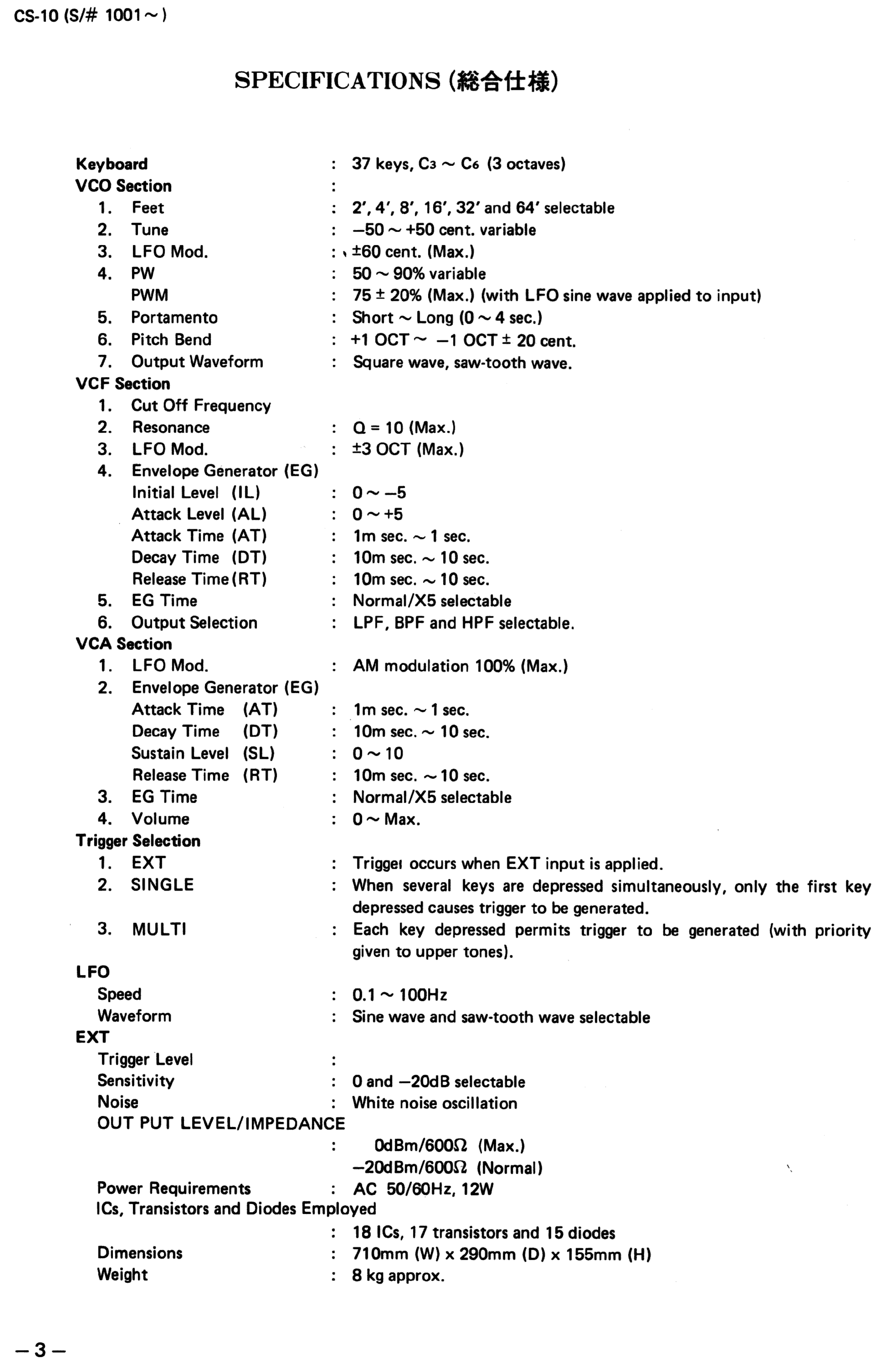 User Manual: Pdf Yamaha CS-10 Service Manual Synthfool:Docs:Yamaha: