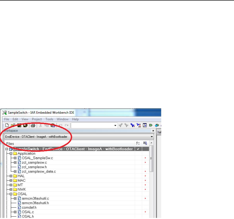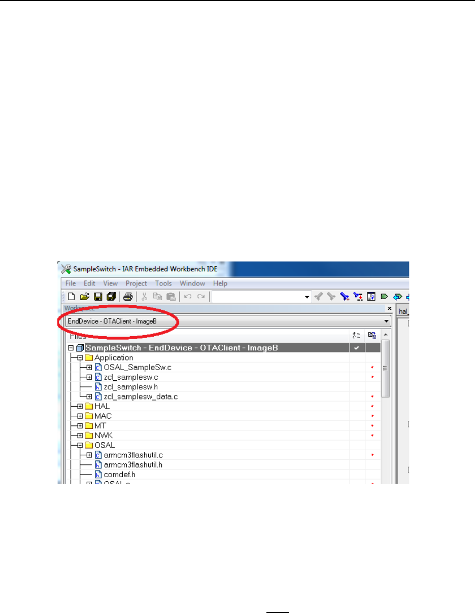 With the SampleSwitch.eww workspace open in IAR and either of the OTA Client build configurations selected
