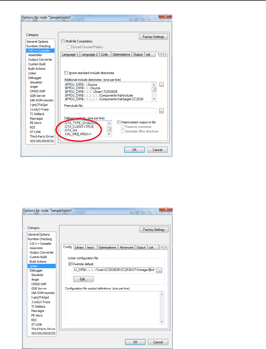 We need to uncomment two lines in the linker control file, for the Sample Switch: OTA Client (Router or End