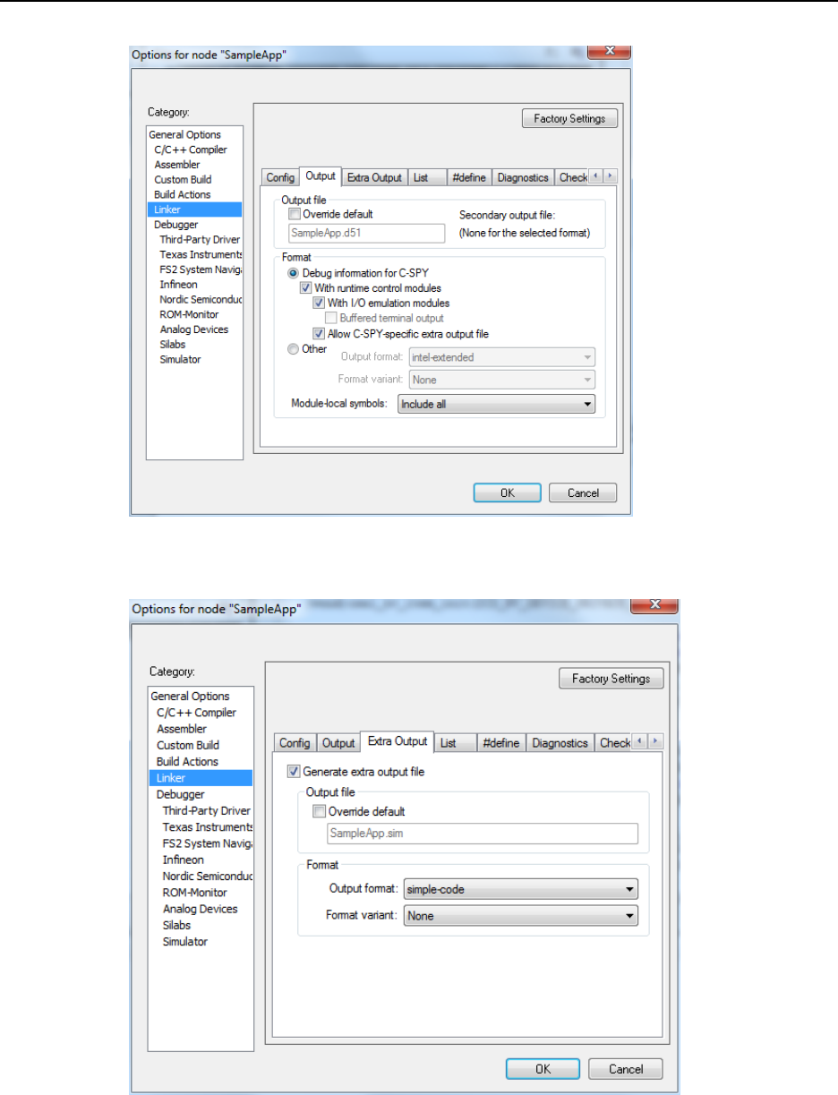 c) Select the “Output” tab and check the “Allow C-SPY-specific extra output file” check box: