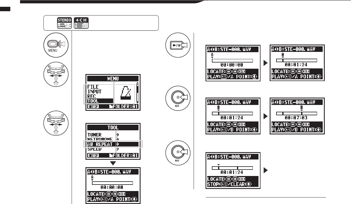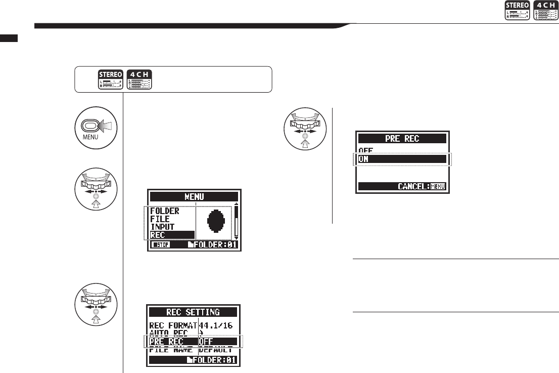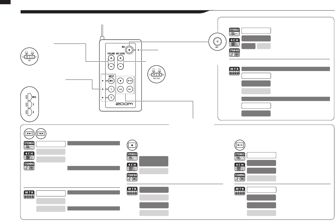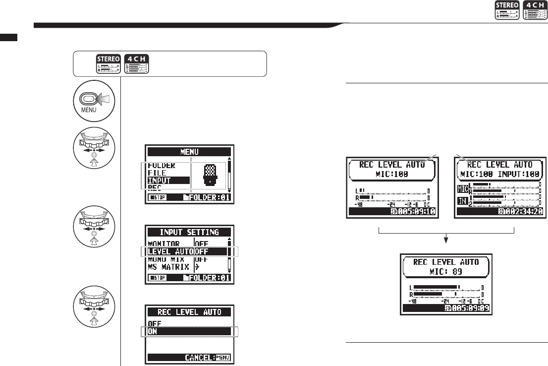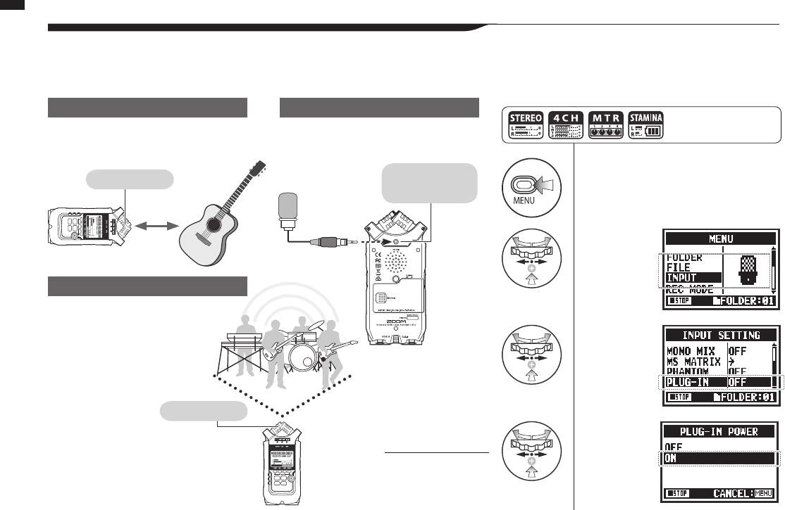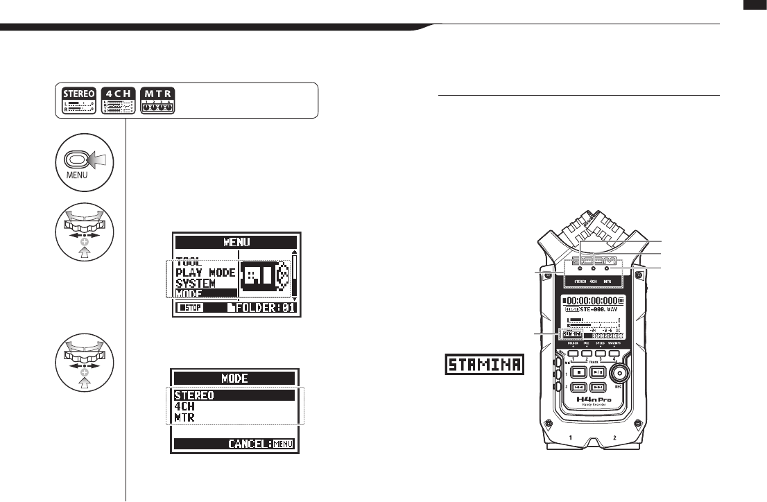 STEREO mode enables high-quality stereo recording. 4CH mode can record 2