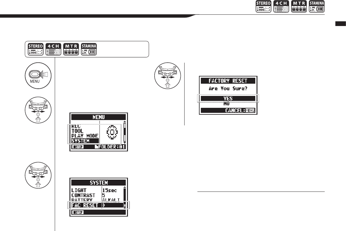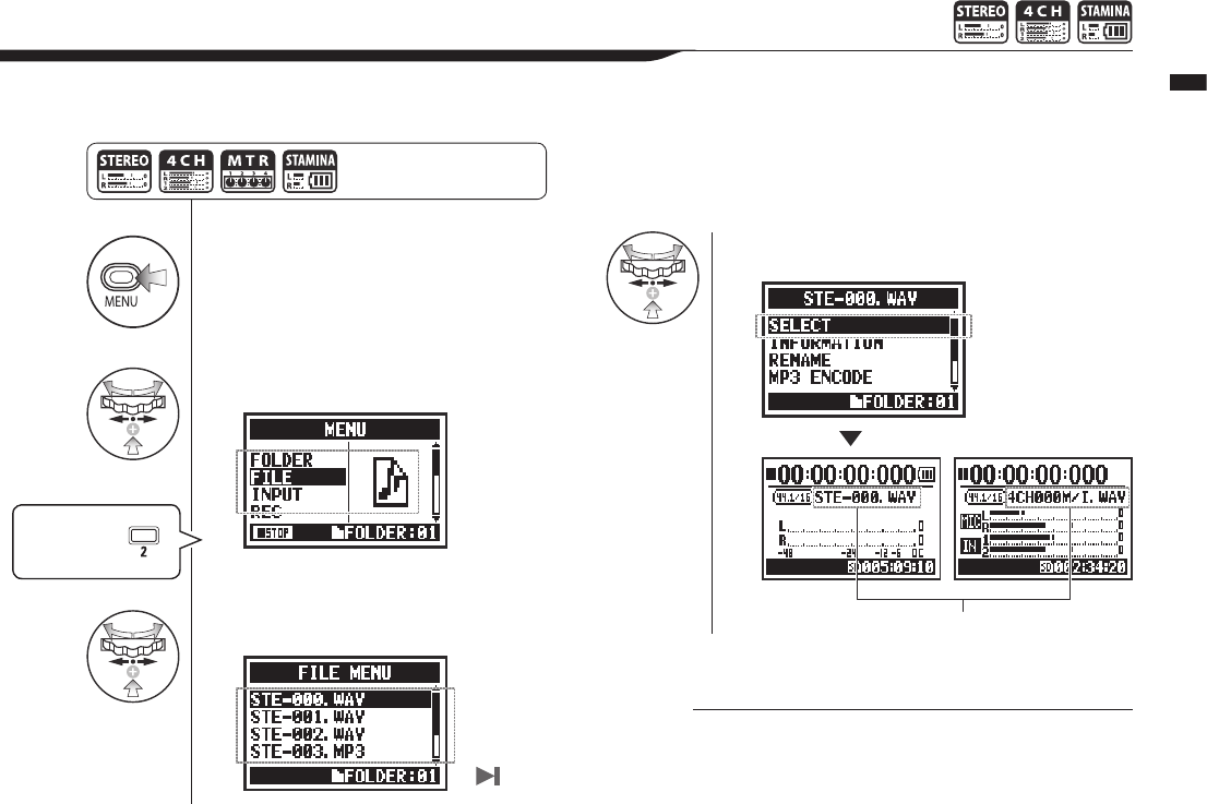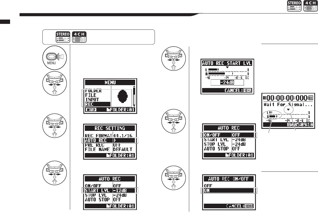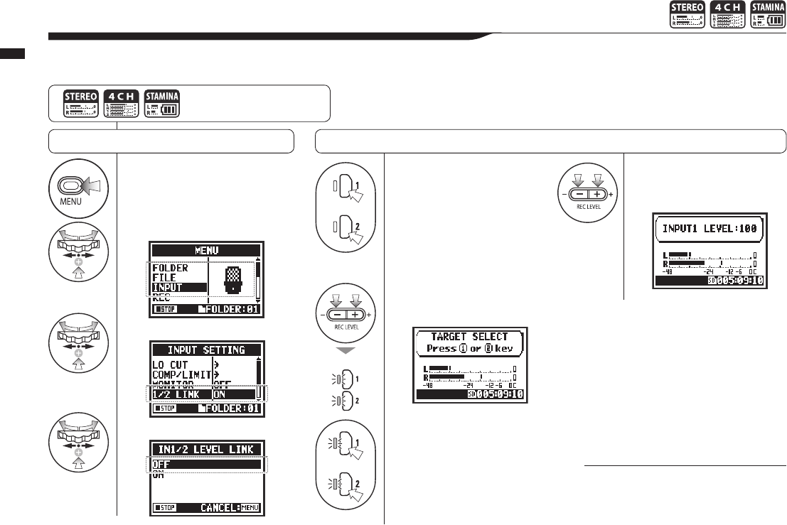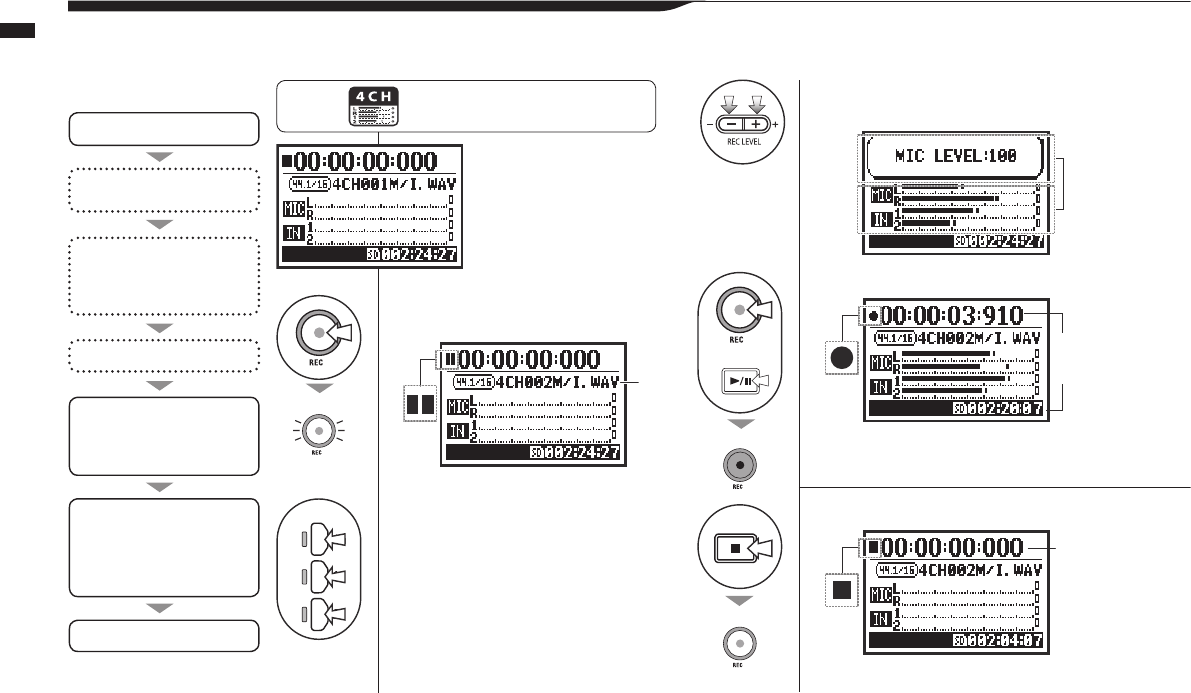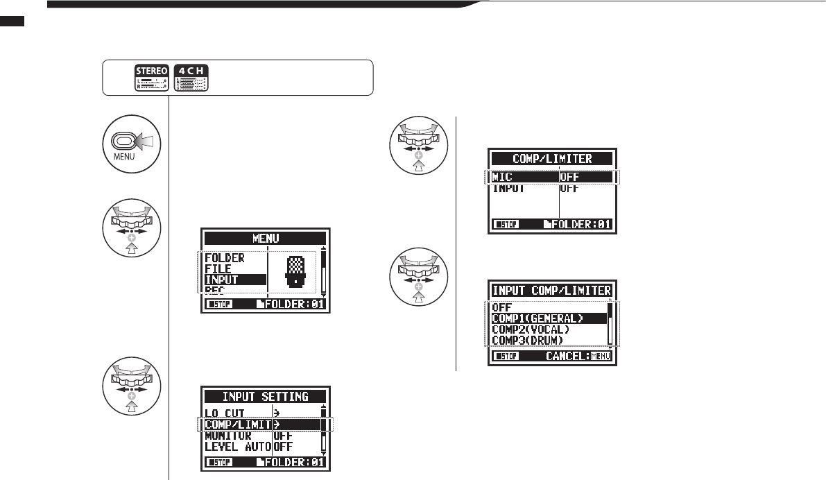 STEREO mode enables high-quality stereo recording. 4CH mode can record 2