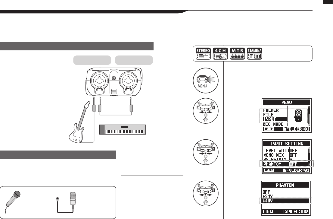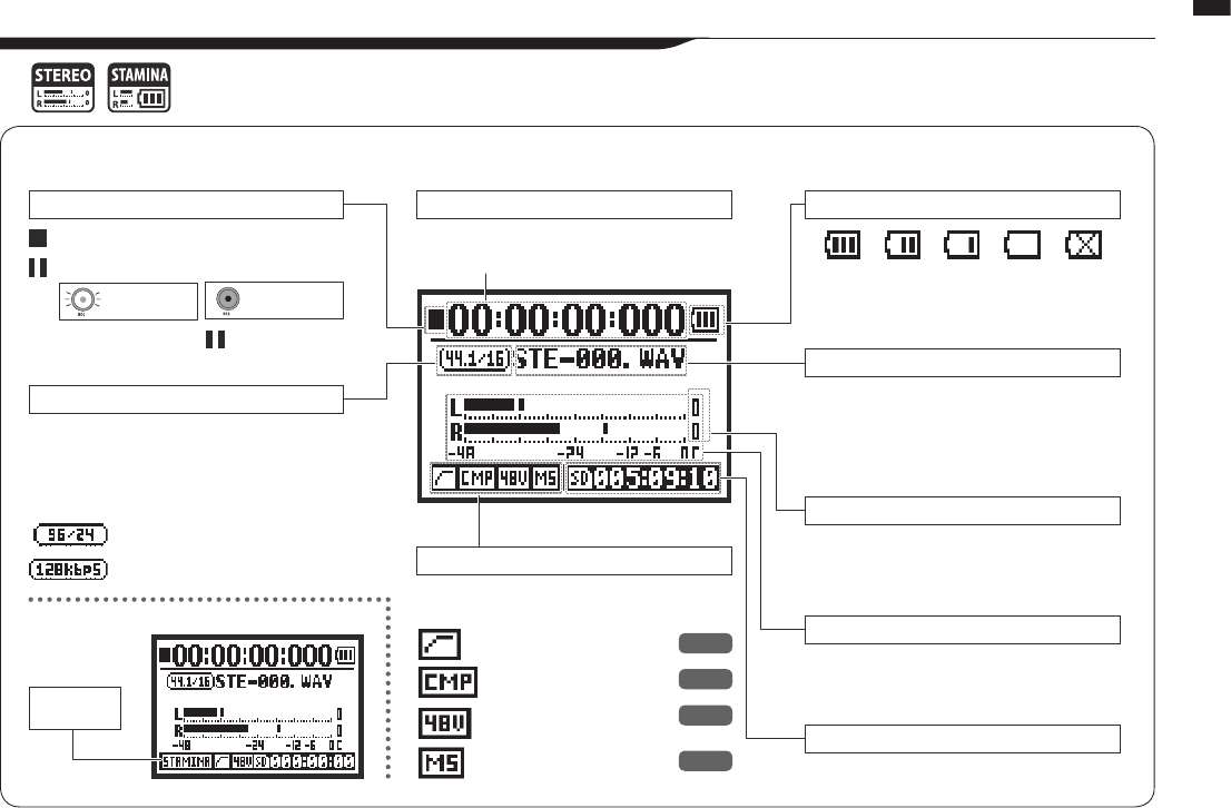 ments and vocals. Furthermore, in STAMINA mode you can record in stereo for