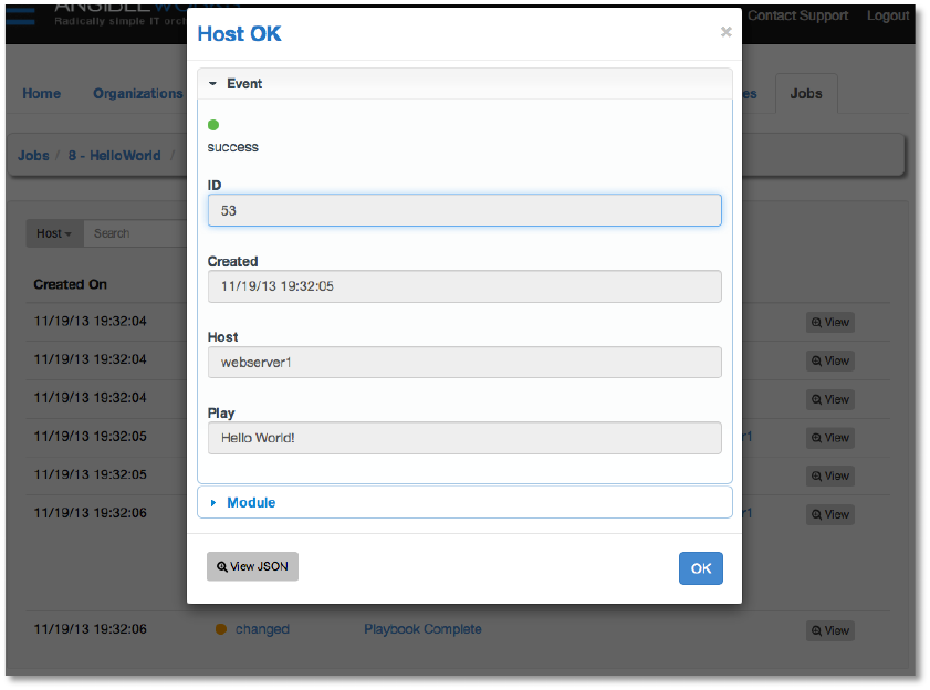 monitor the job, and allow you many great views into the results and the history of your hosts