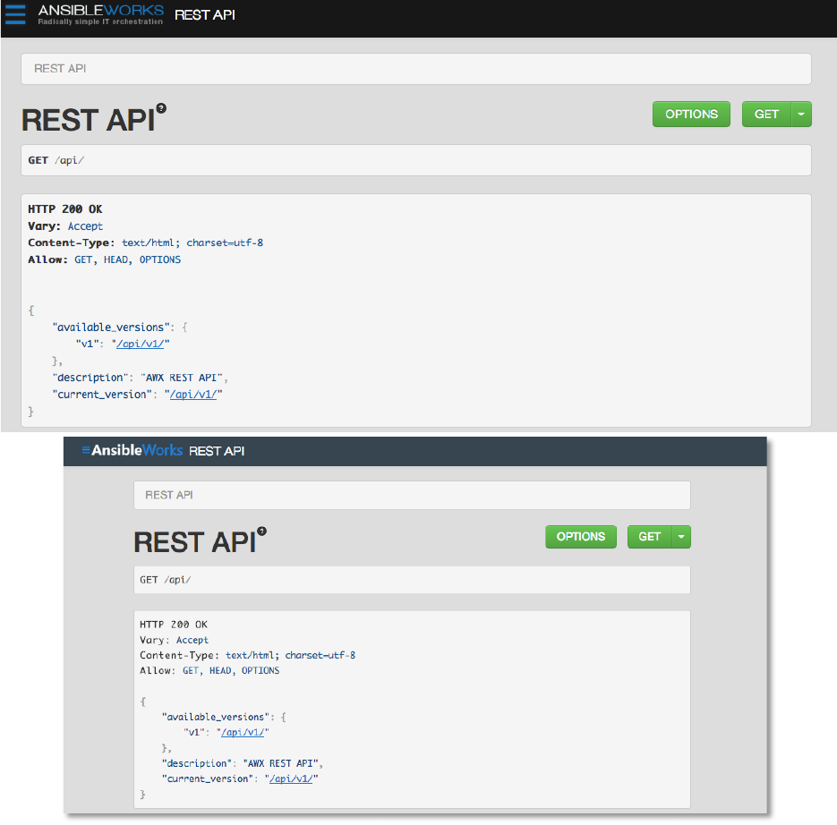 AWX uses a standard REST API, rooted at /api/ on the server. The API is versioned for