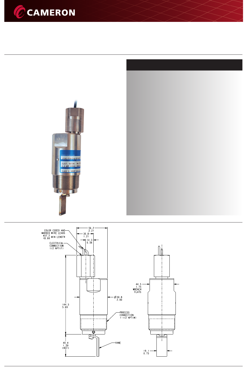 CAMERON 1520 Top Mounted Flow Switch Technical Data Sheet