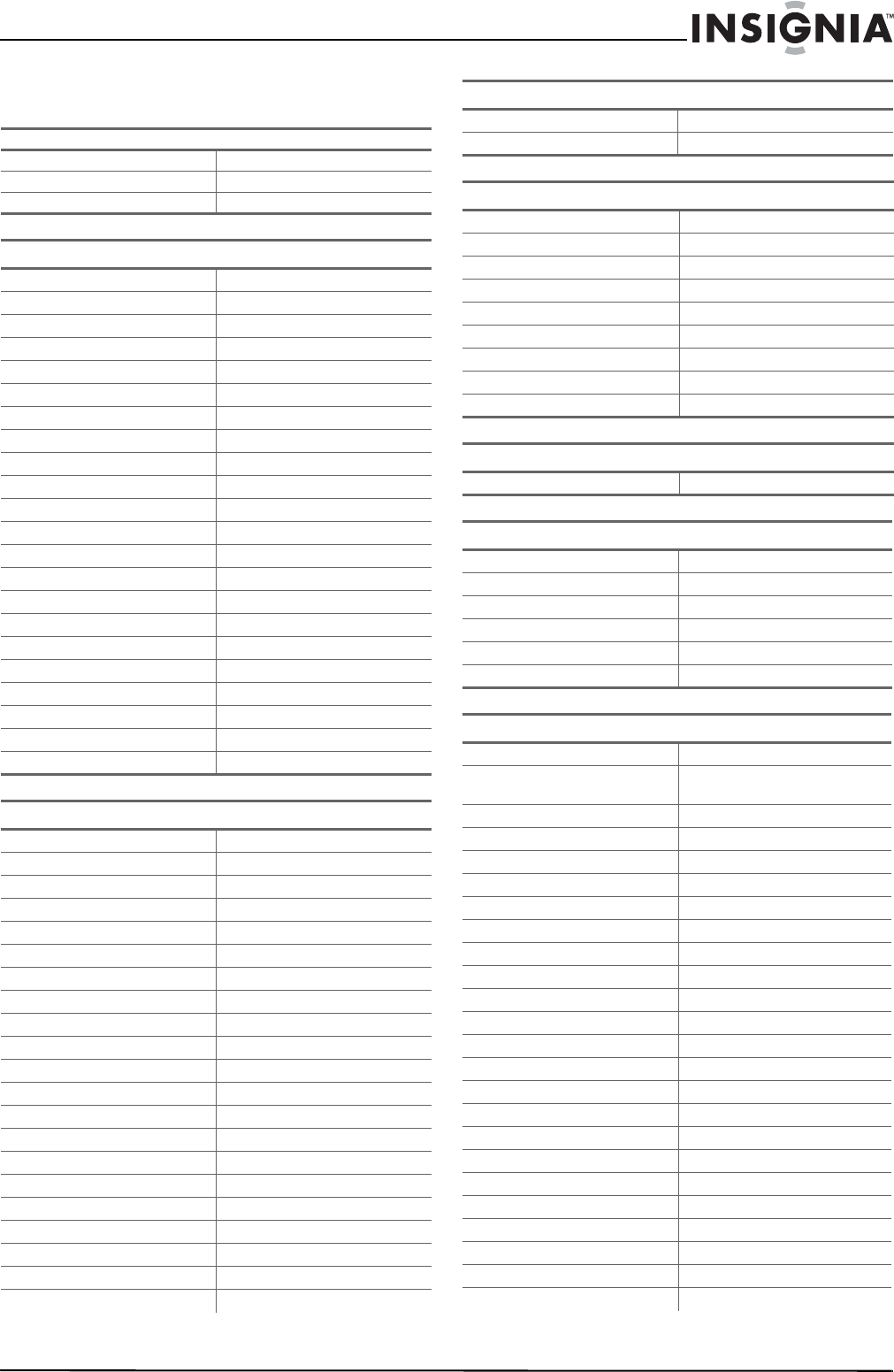 Preprogrammed remote control codes . . . . . . . . . . . . . . . . . . . . . . . . . . 28