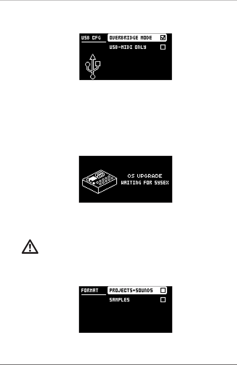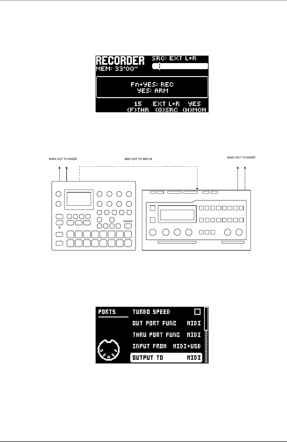 • A brief signal will be sent to all audio outputs of the Digitakt when the Test mode on the STARTUP Menu