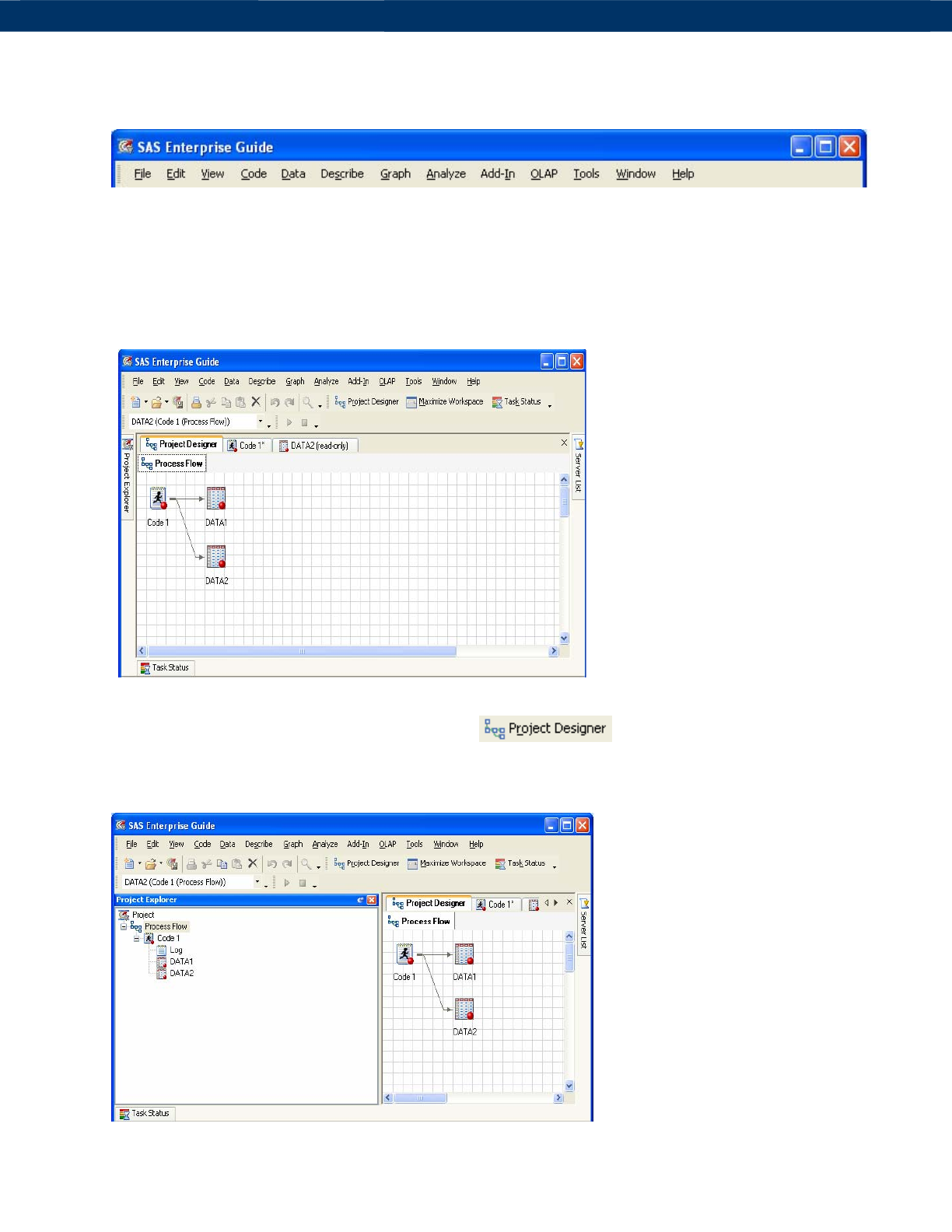 items and results into Projects. All of the code and tasks that you run within an Enterprise Guide session are part of