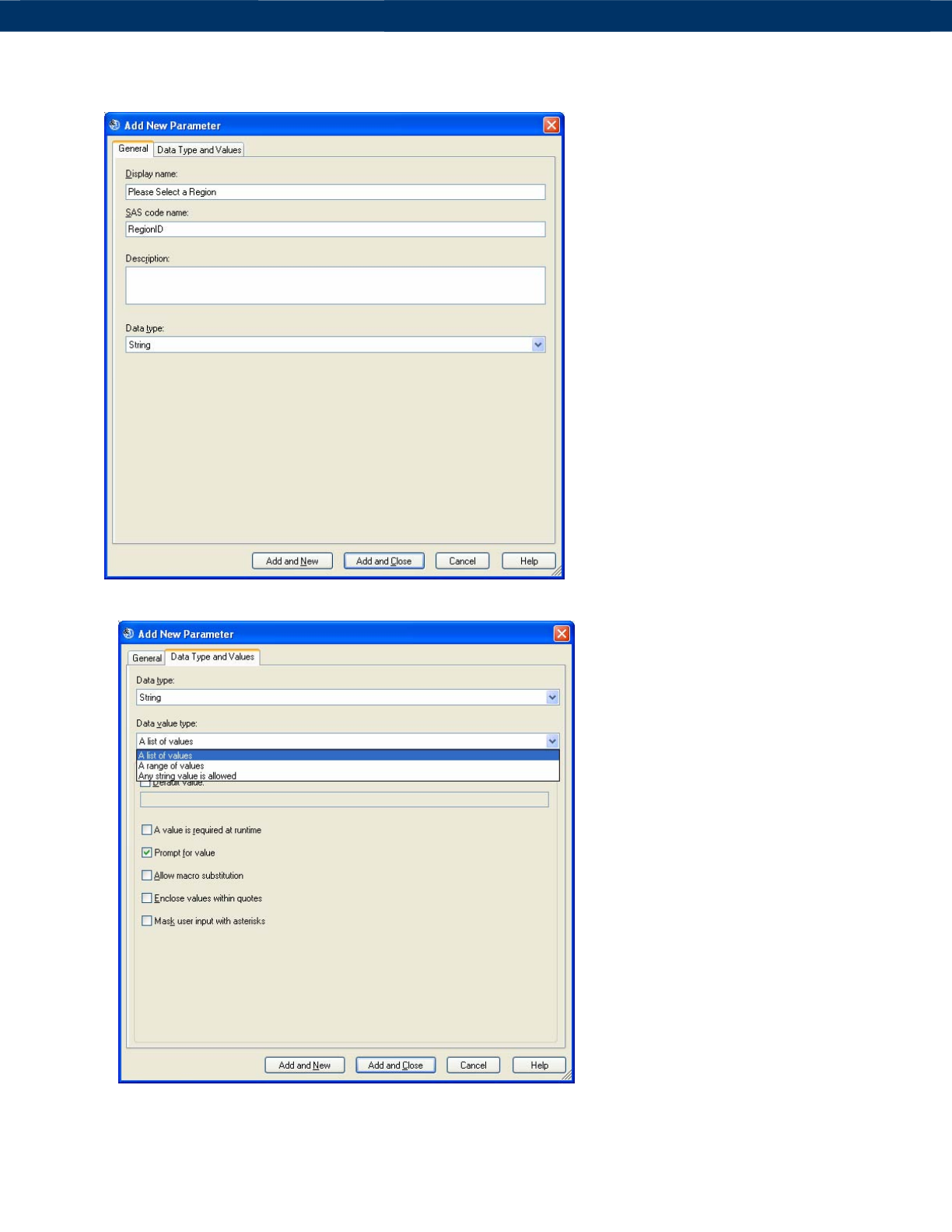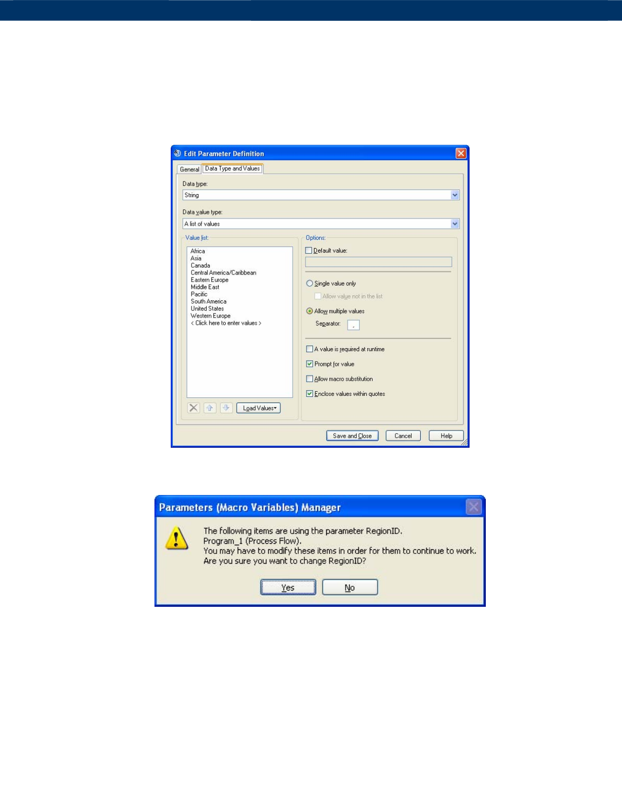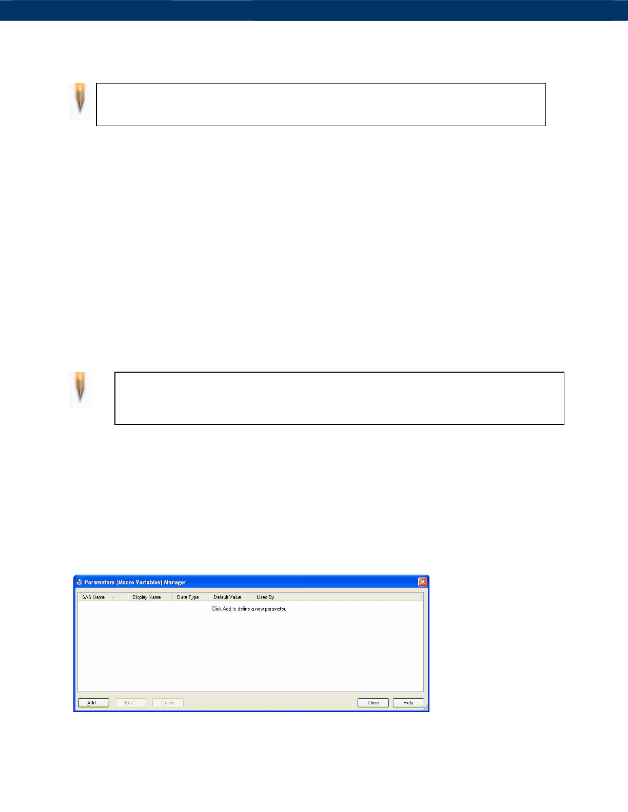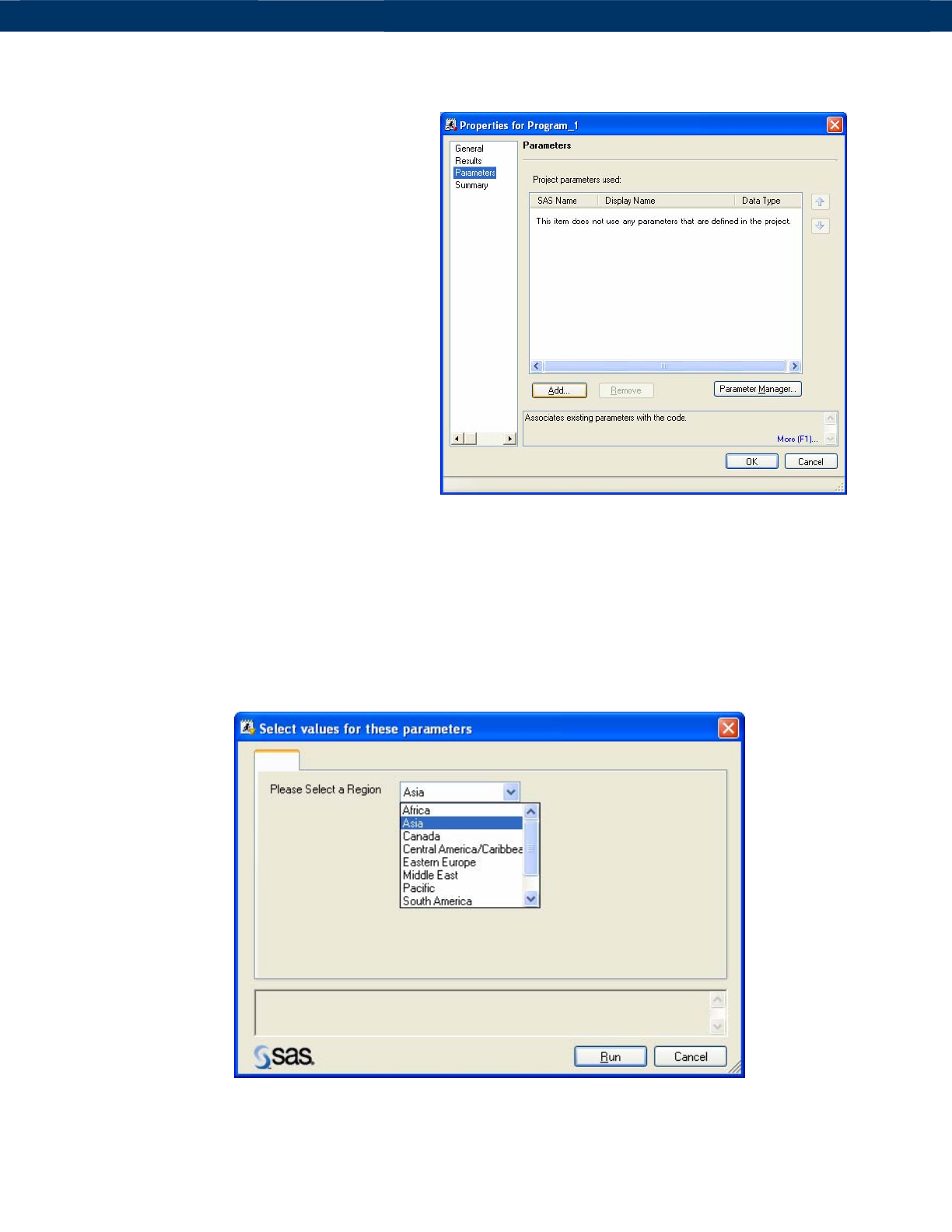 Process. Parameter values that the user enters are passed as macro variables to the SAS code and can be used as