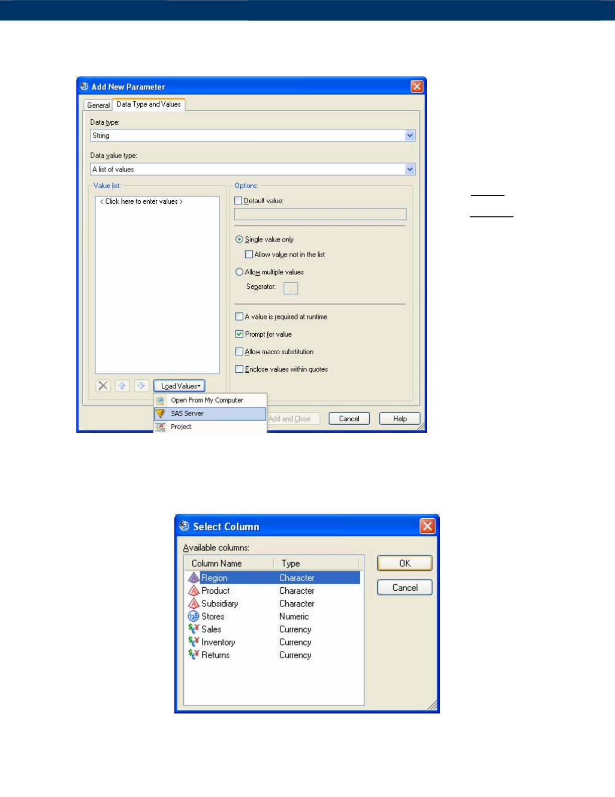 explore. First, check out the use of parameters with Stored Processes. Then, begin looking at the other many