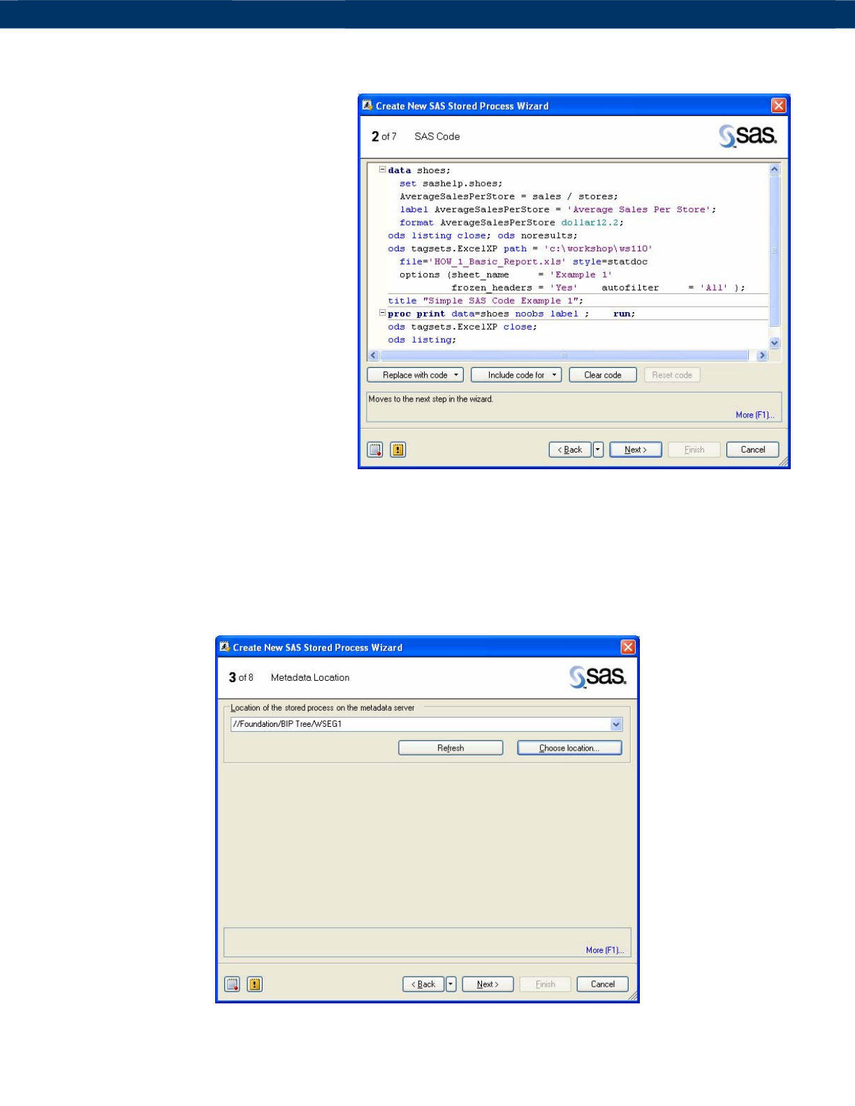 be saved, then click Next. Your administrator can help you determine the location for your Stored Processes. In