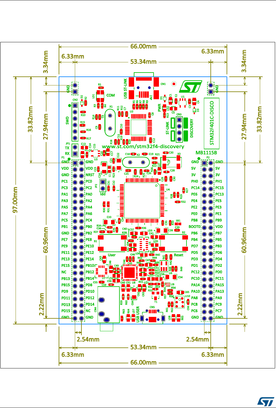 - Figure 9. STM32F401 Discovery board mechanical drawing