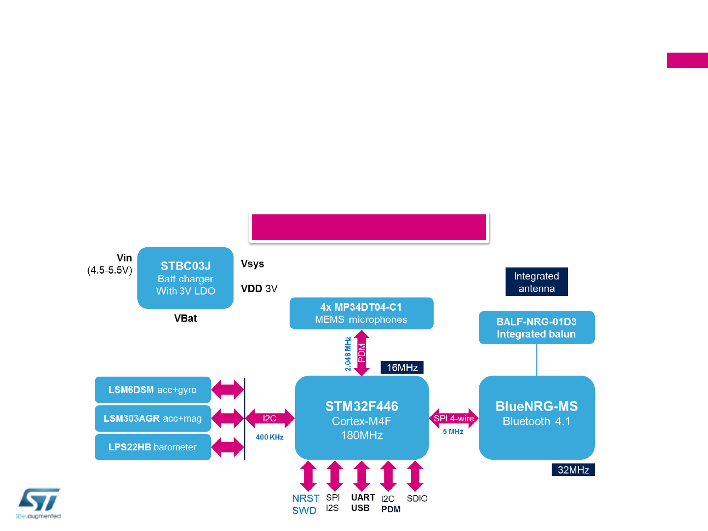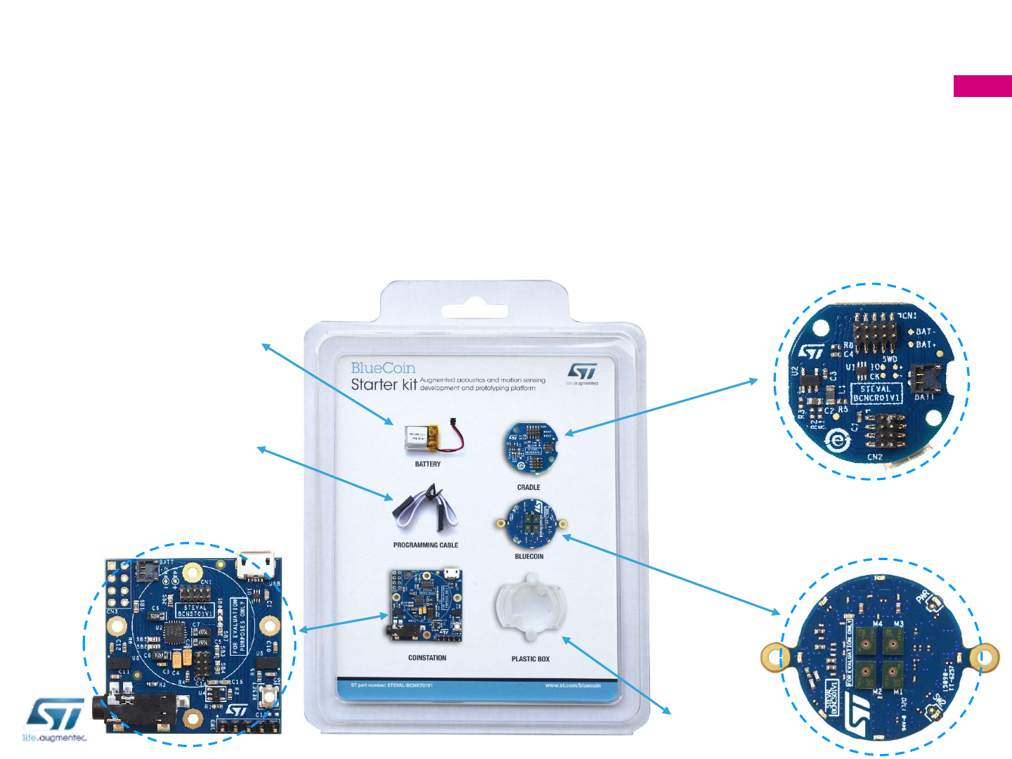 •STEVAL-BCNKT01V1 is the starter kit for the BlueCoin board (STEVAL-BCNCS01V1), ahighly