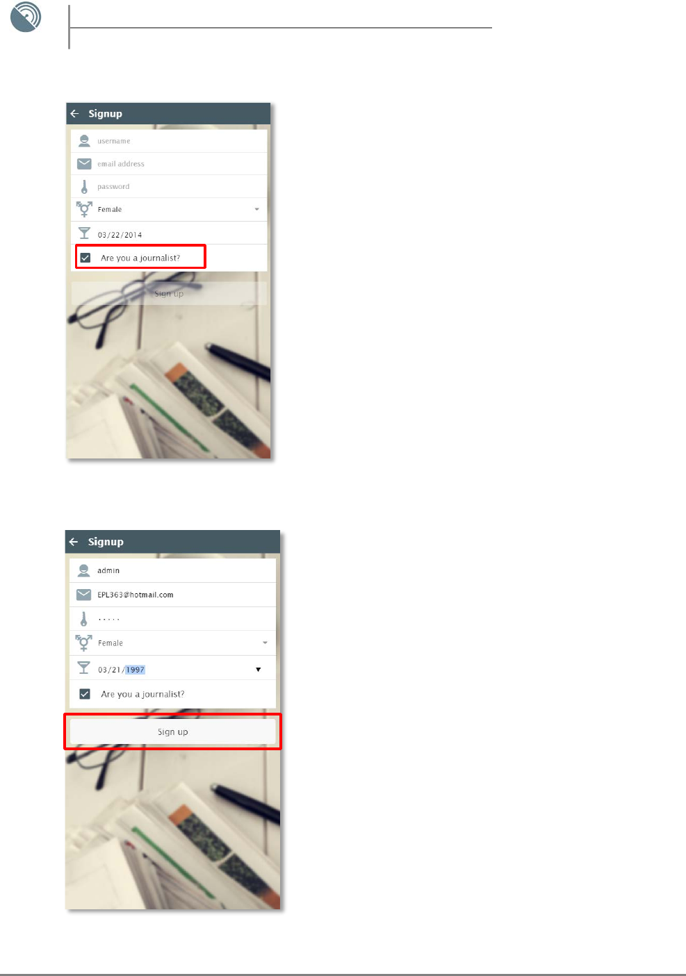 - Signup Screen - Journalist