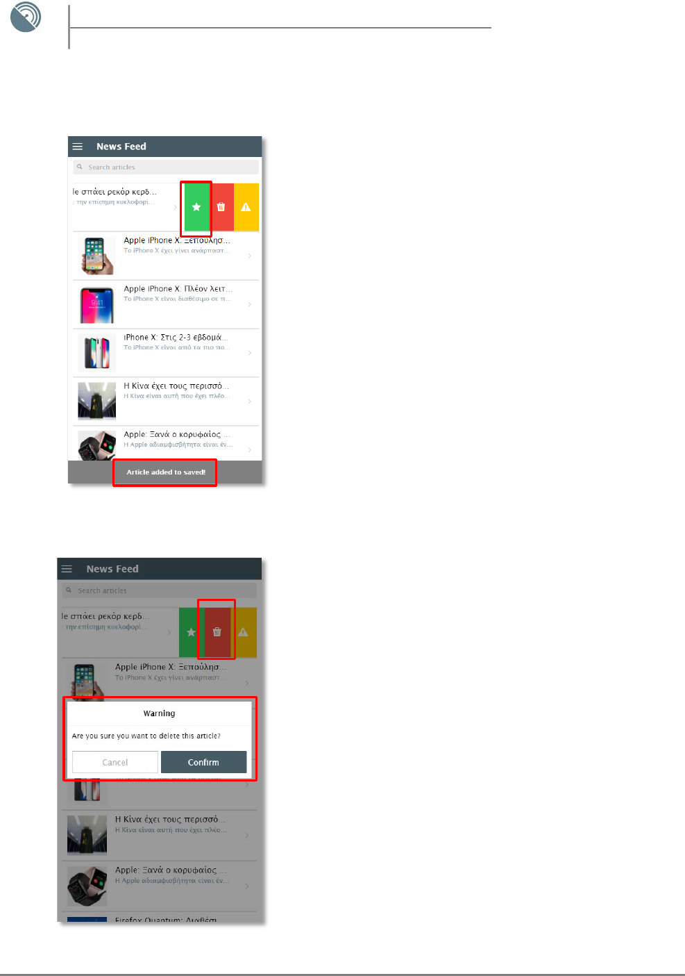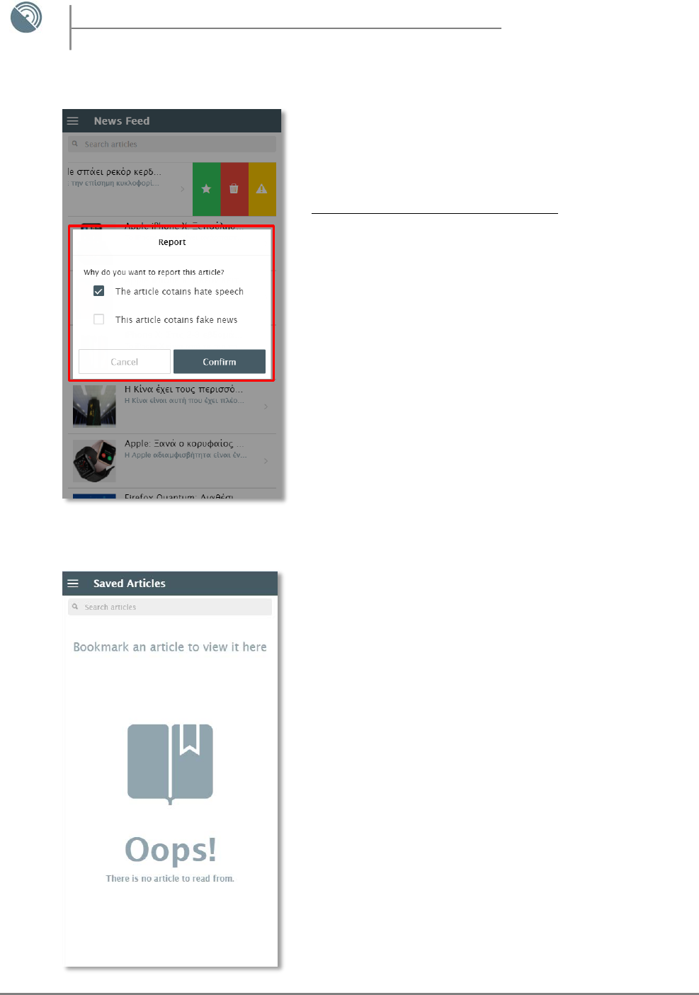 - Viewing Articles – Save, Delete, Report