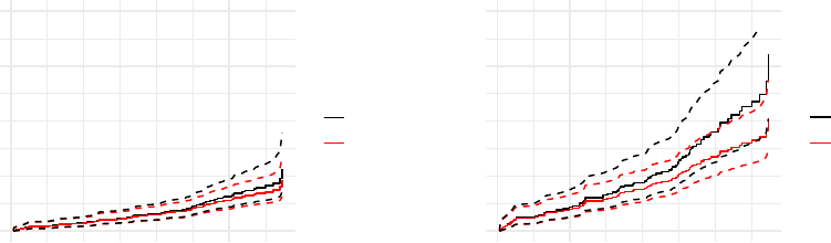 visualization of both conditional and marginal survival or cumulative hazard curves with 95%