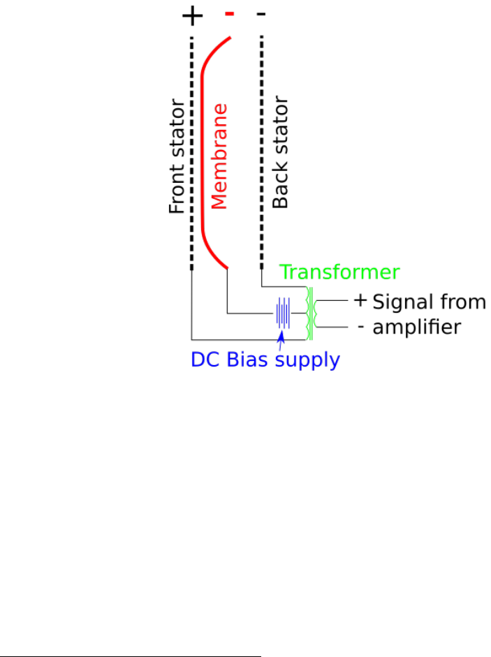 Additionally, there is a negative DC current that keeps the diaphragm charged.