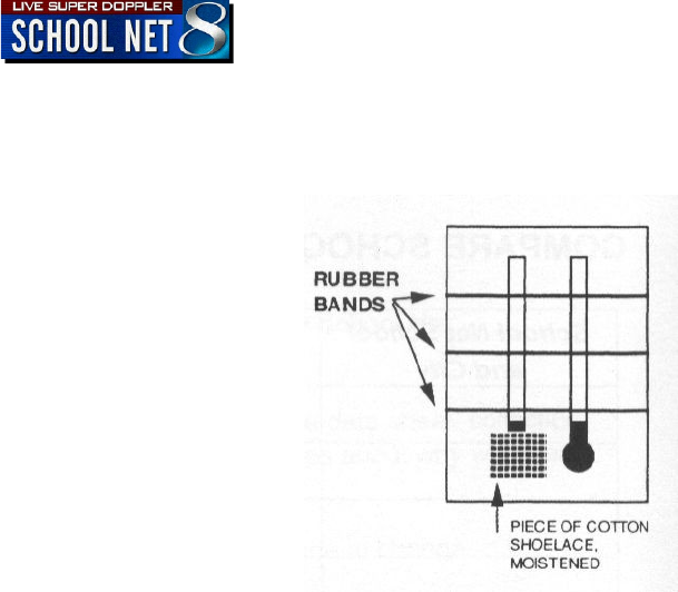 LESSON 10 thermometers, wide cotton shoelace, large piece cardboard, 3 rubber bands, scissors, water