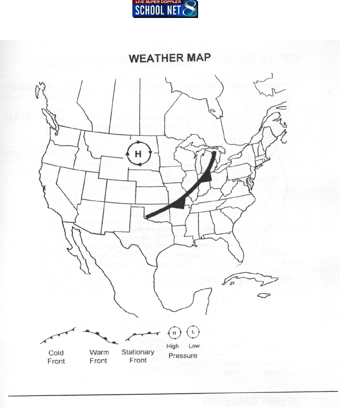 LESSON 18 student weather maps, transparency of weather maps, transparency of Warm/Cold Fronts page