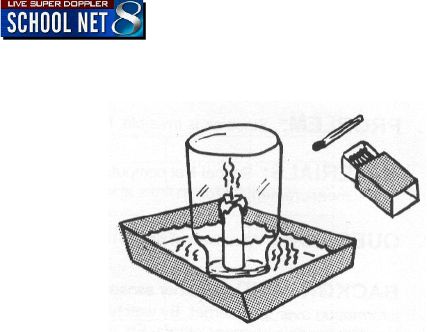 RESULTS: Candle will cease burning momentarily. Water will rise in the jar.