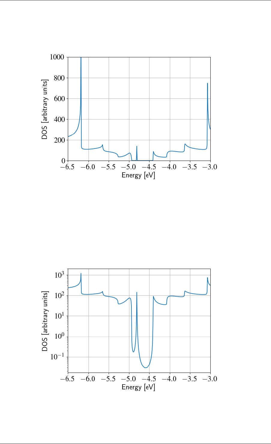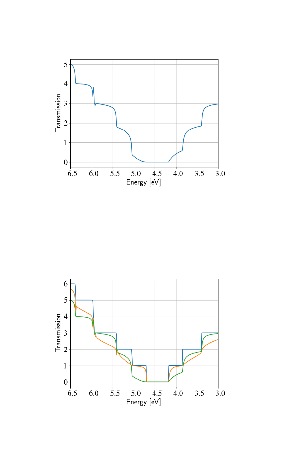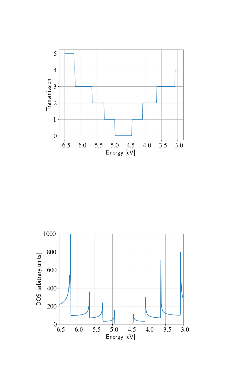 The resulting transmission and density of states are shown in Figures SCC DOS for single