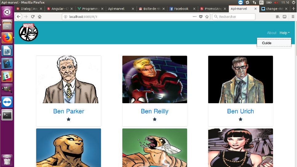 Char-list: il contient la liste des characters et leur propriétés et appelle modal pour l’affichage