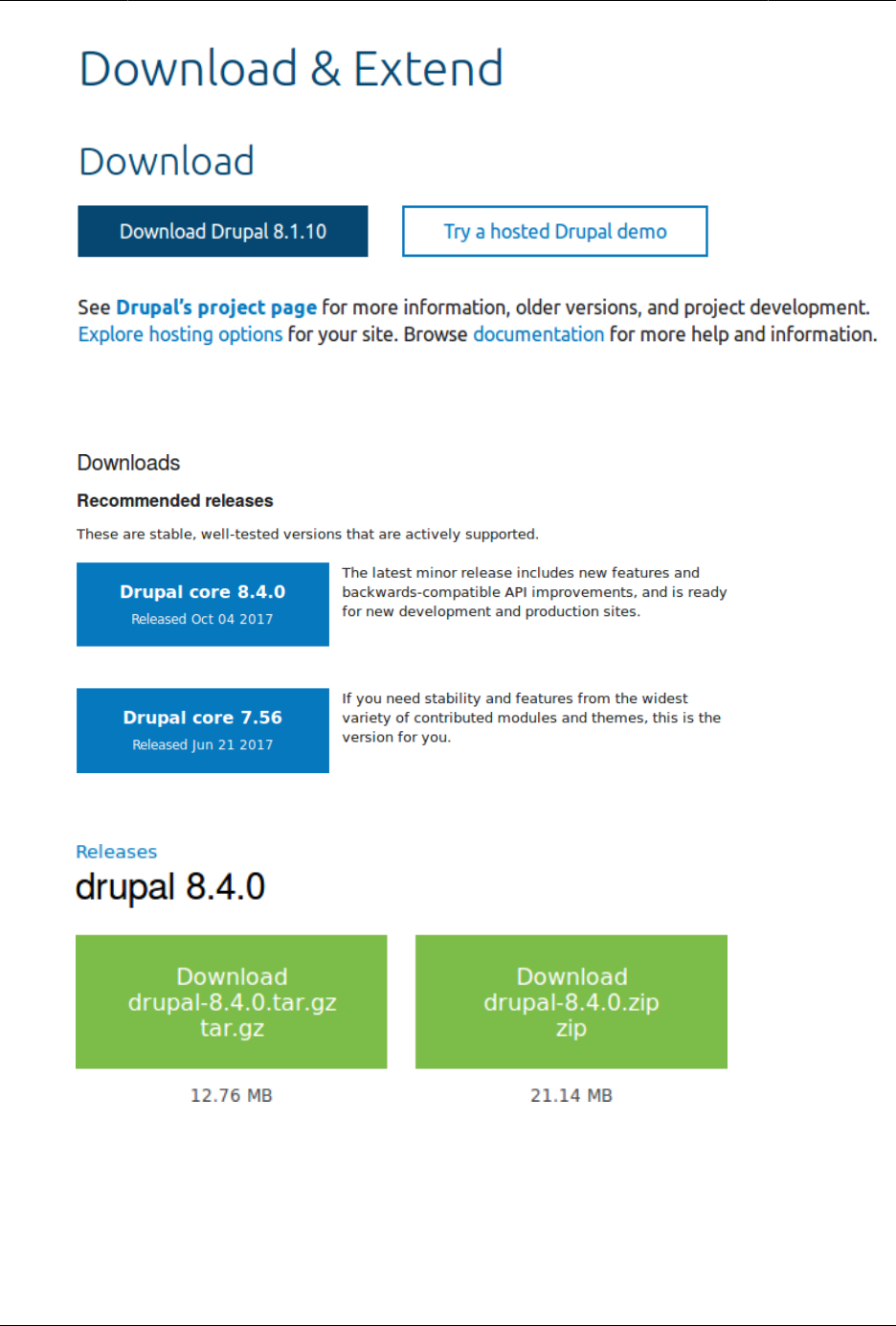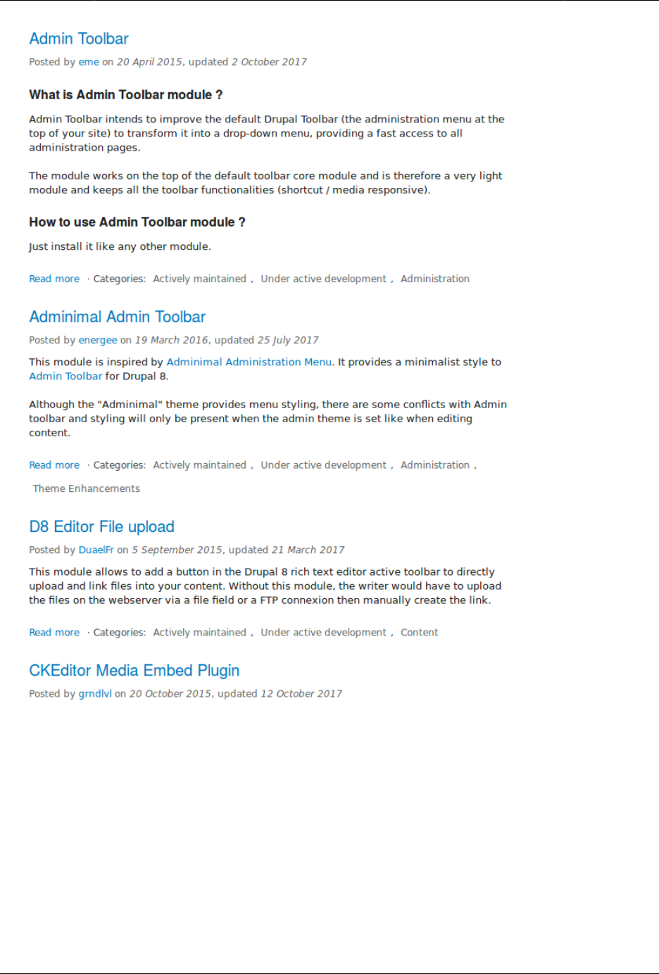 in Drupal 8", each copyright 2000-2017 by the individual contributors to the Drupal