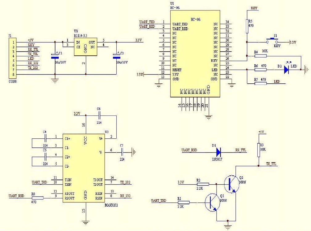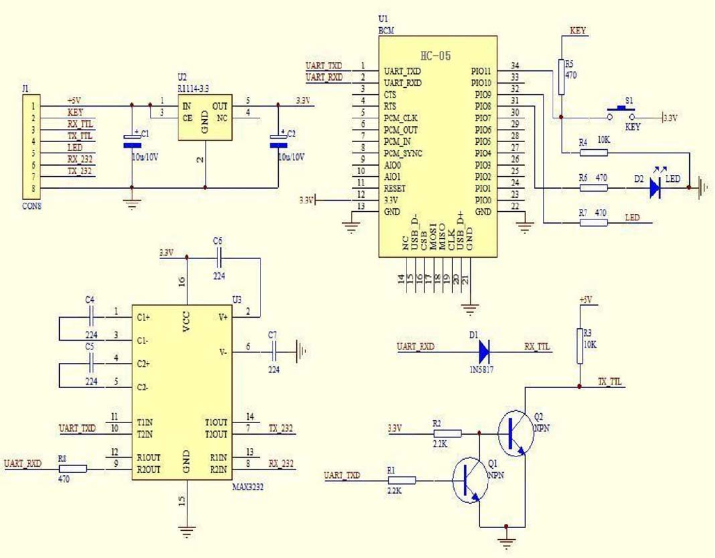 This Bluetooth connection is equivalently liked to a serial port line connection including RXD, TXD