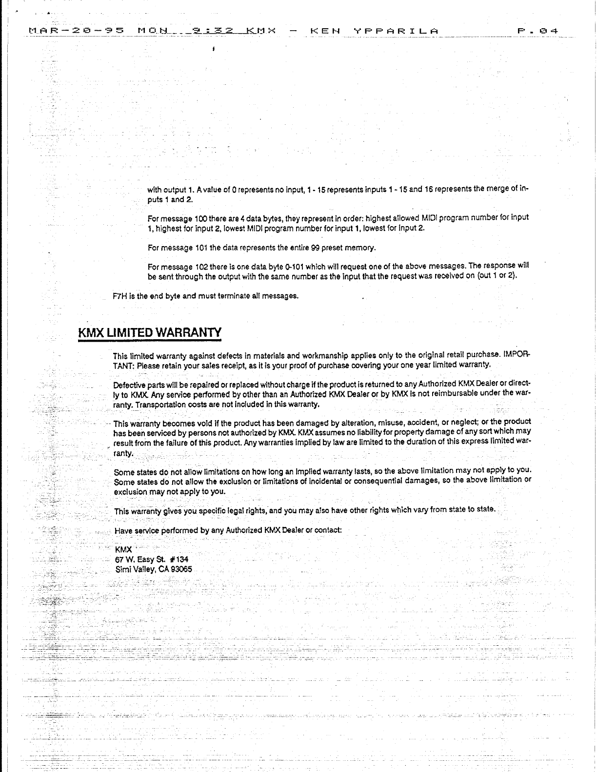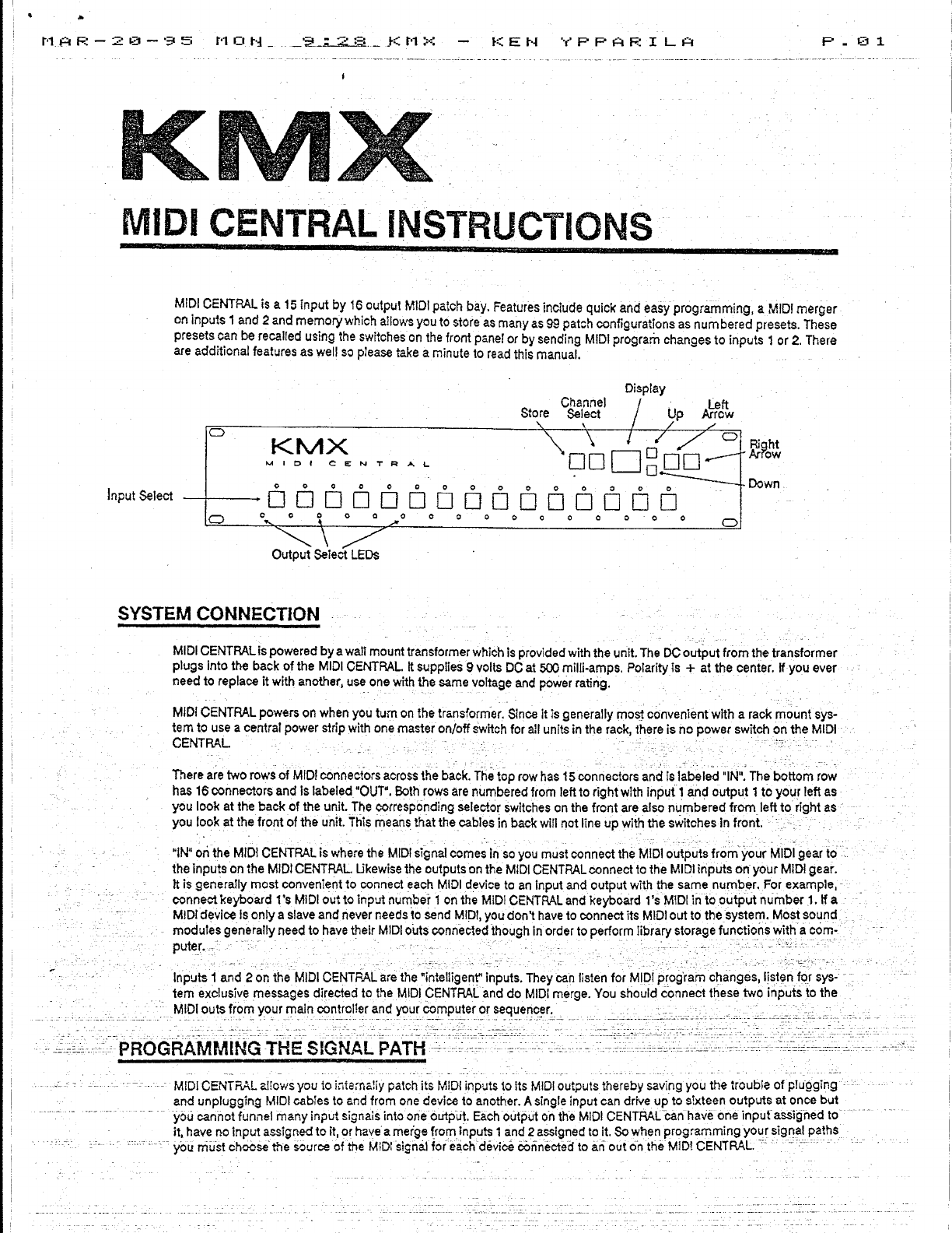 User Manual: Pdf KMX MIDI Central User's Manual [PDF] World's Smallest s Library
