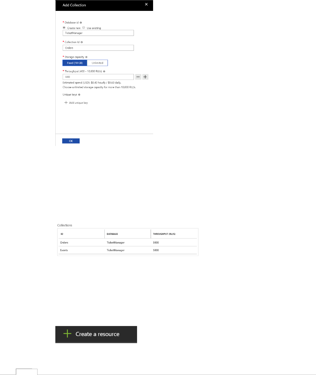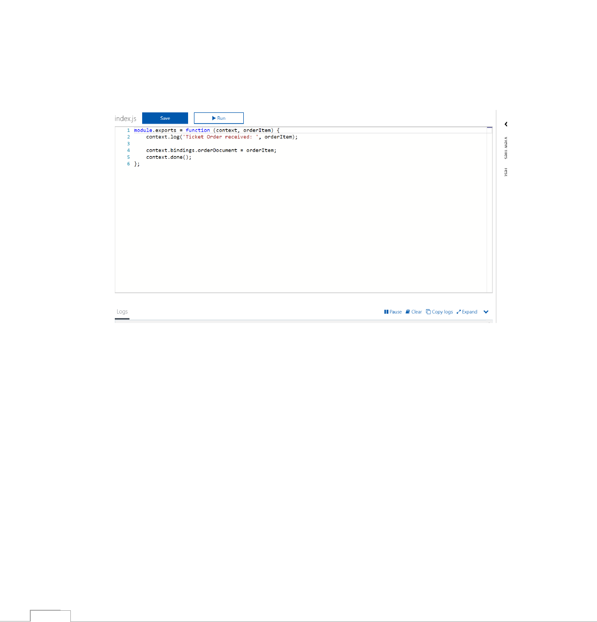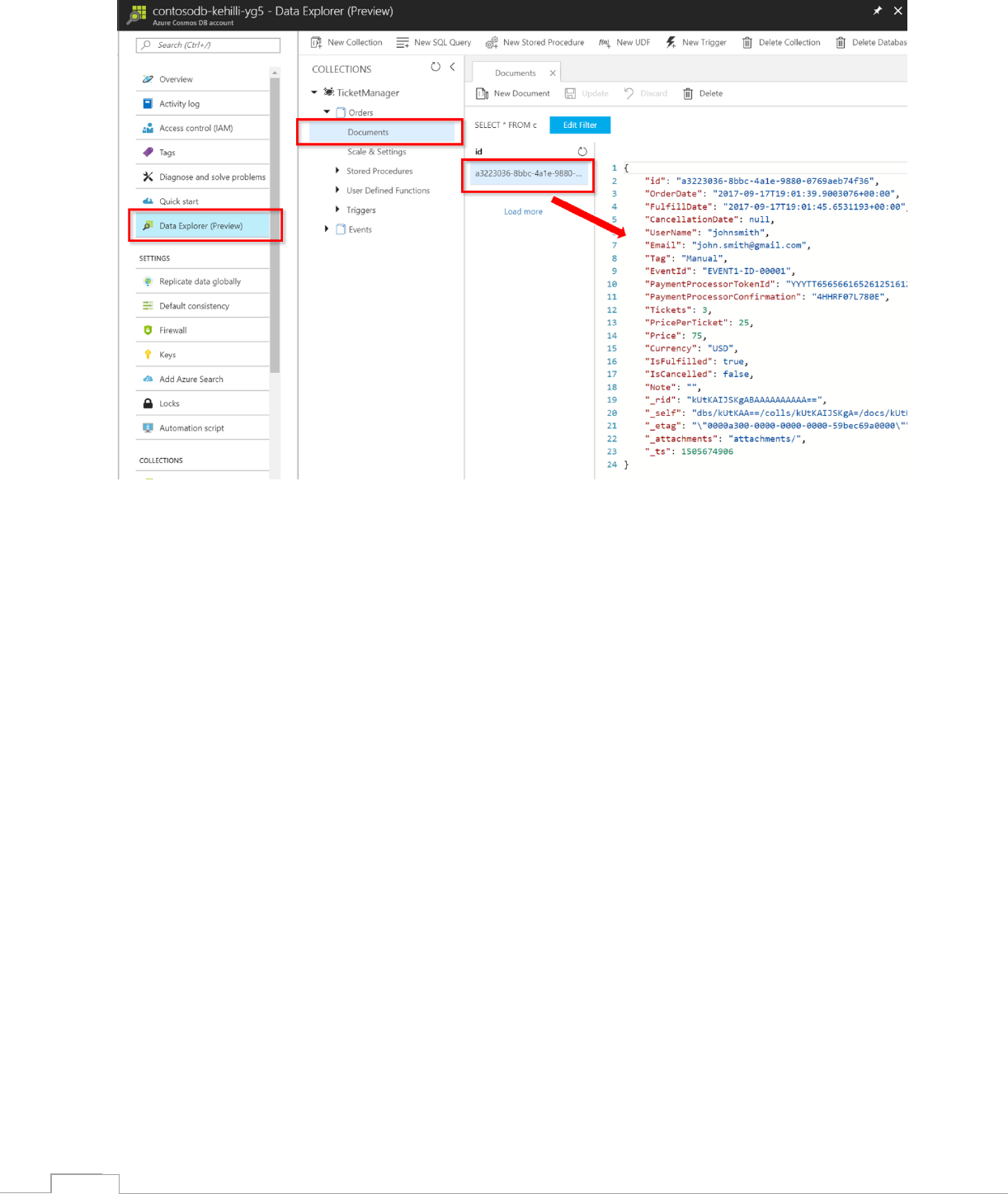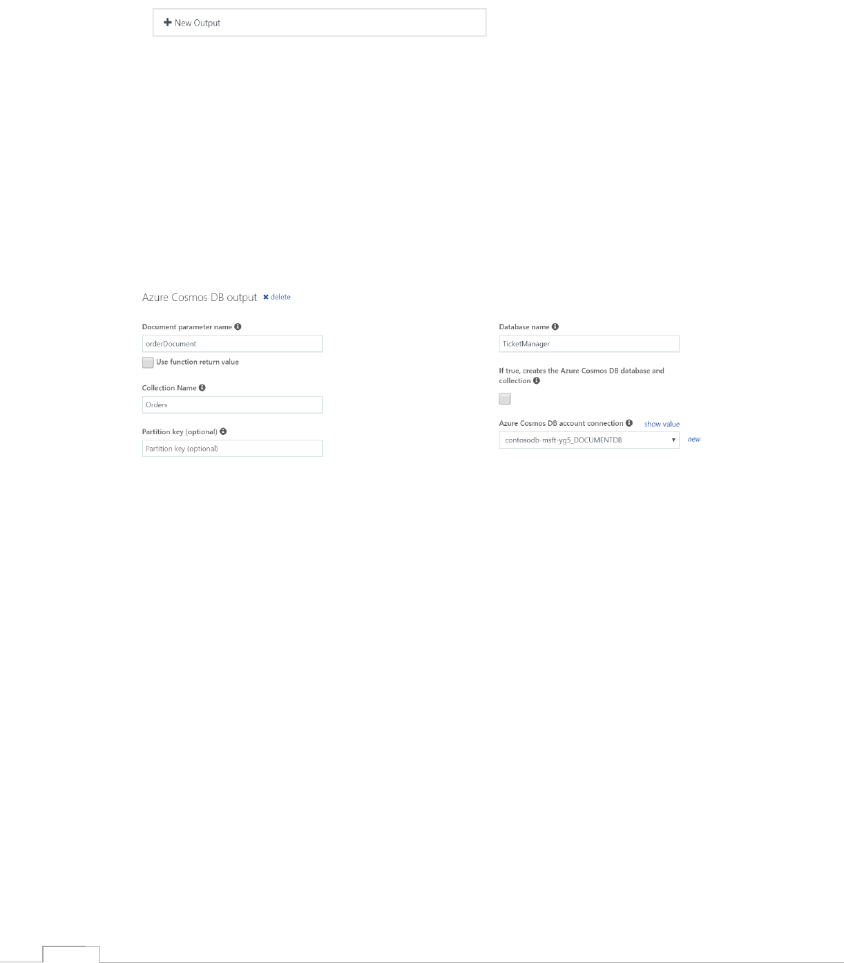 The design also calls for saving the state of the ticket order to a Cosmos DB collection for ad hoc queries.