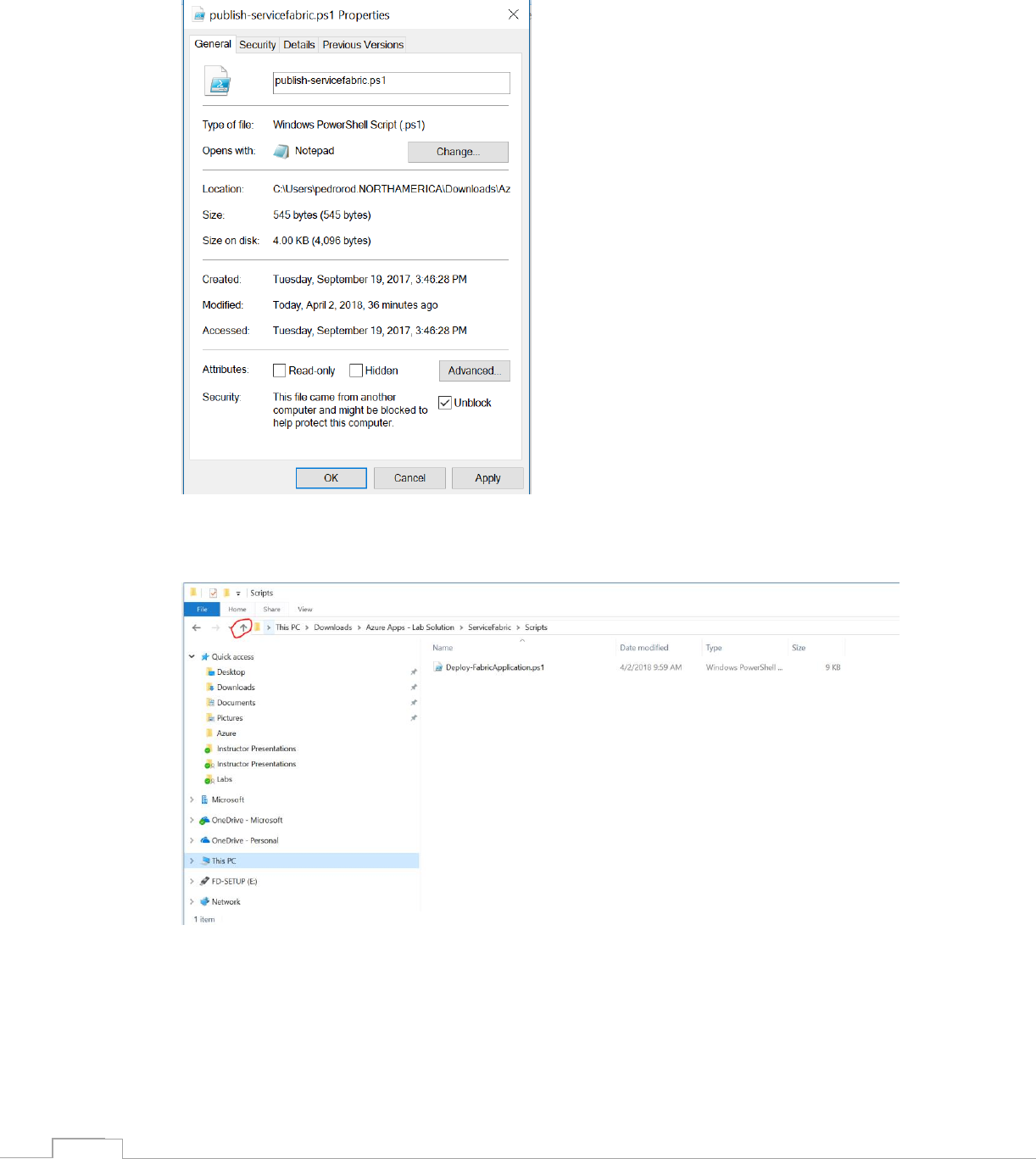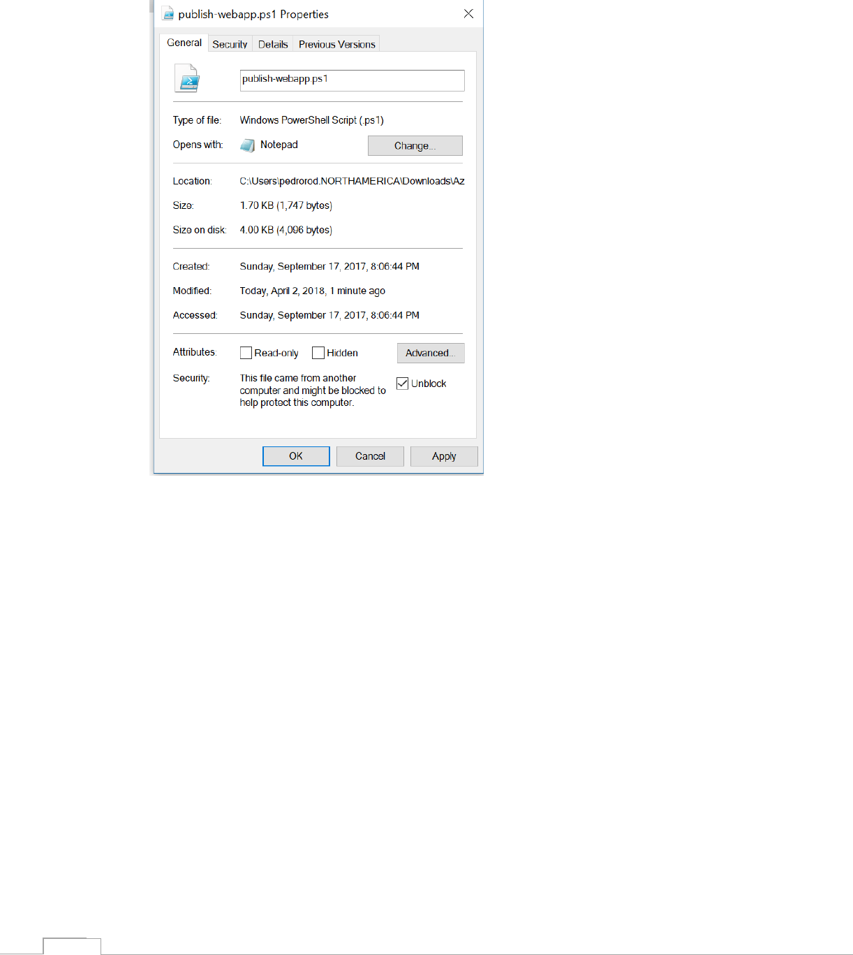 14. Locate the publish-webapp.ps1 file within your lab solution. Unblock the file by right-clicking on