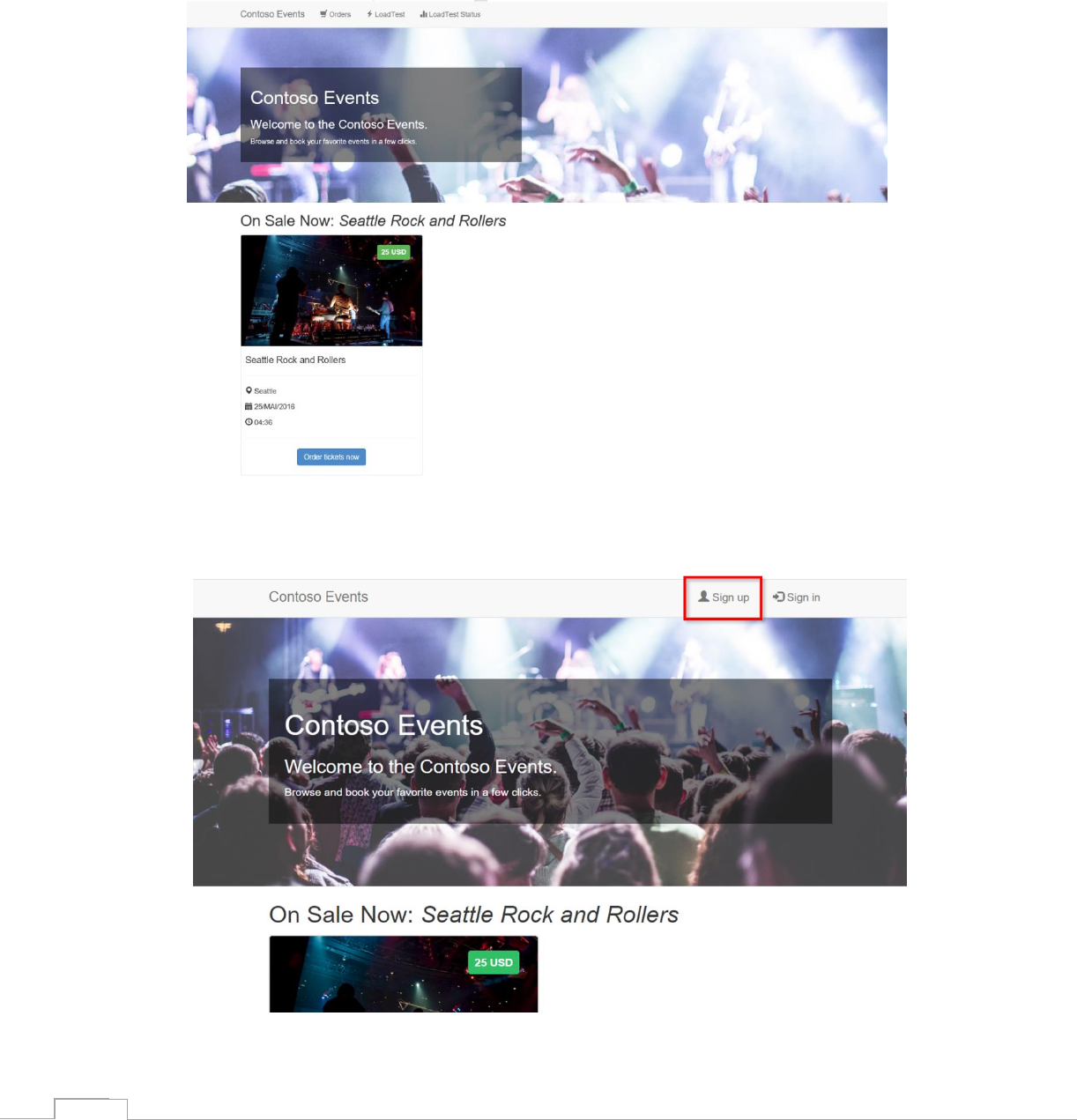1. Navigate to the published Web application at a URL like https://contosoeventsweb-
