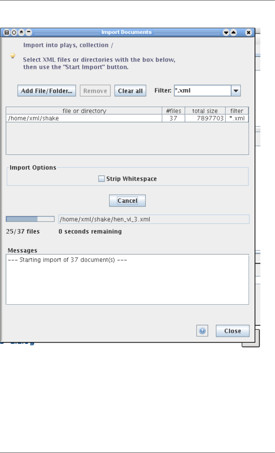 This is a simple dialog through which the XML Library can be put into an "optimal" state. This operation involves