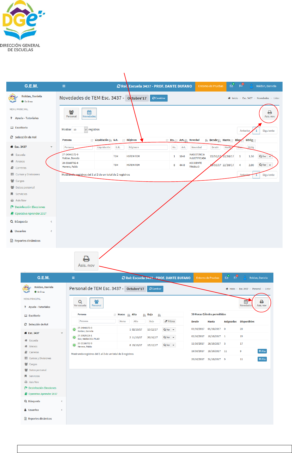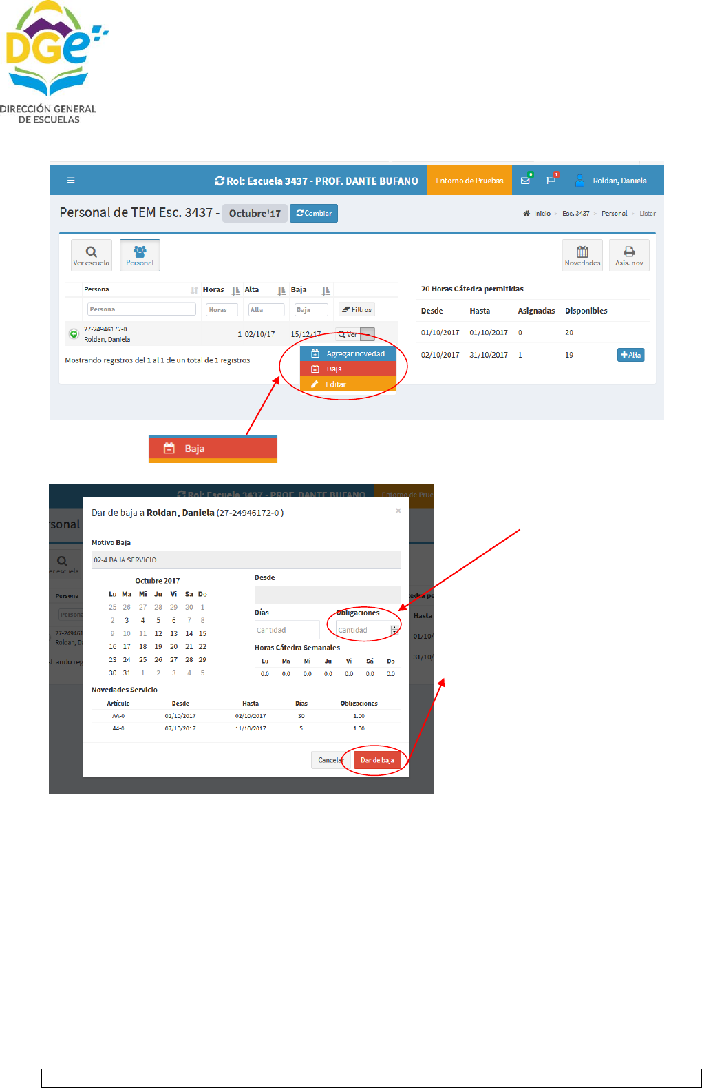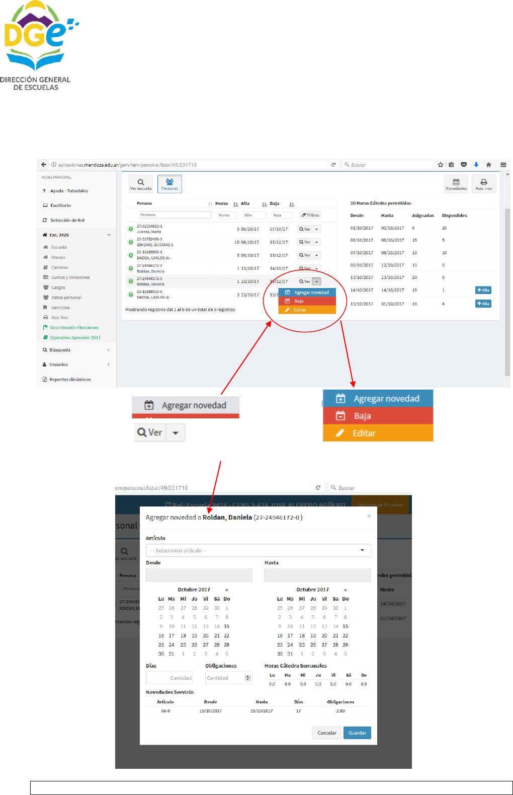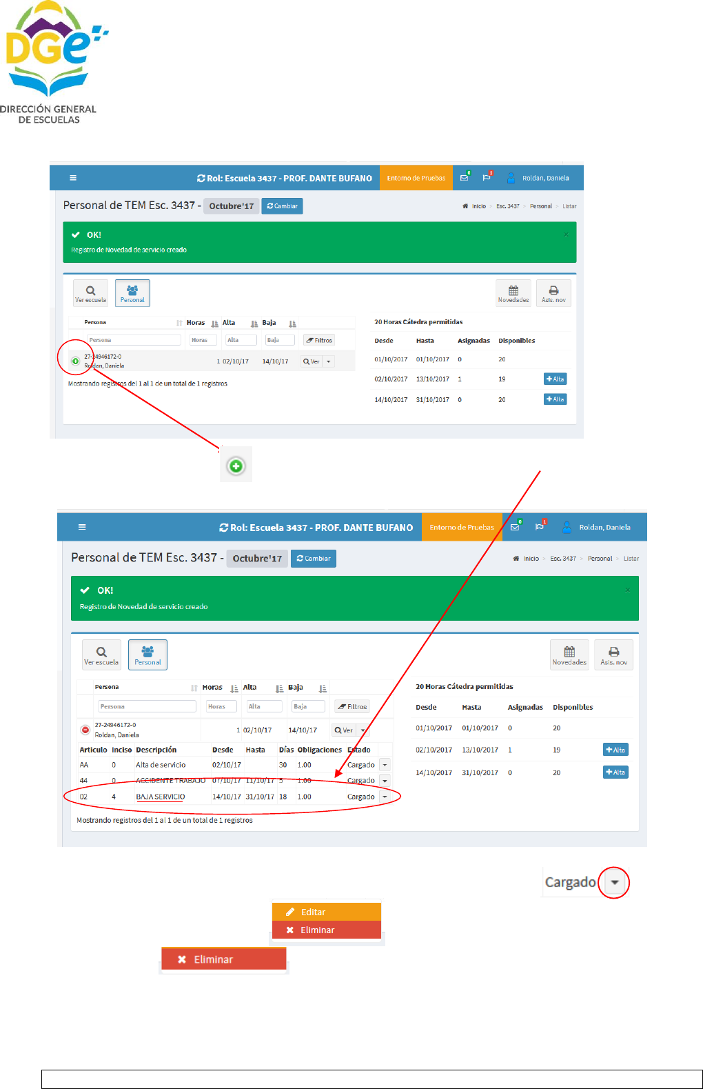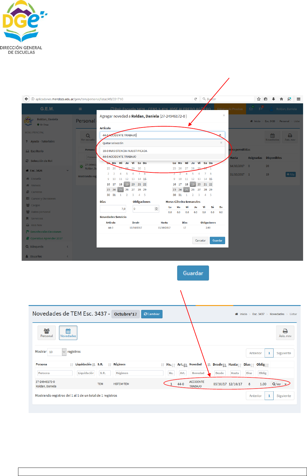Y ANEXO I DE LA CIRCULAR 7 y de poseer el docente novedad por art. 44 se debe adjuntar, certificado de
