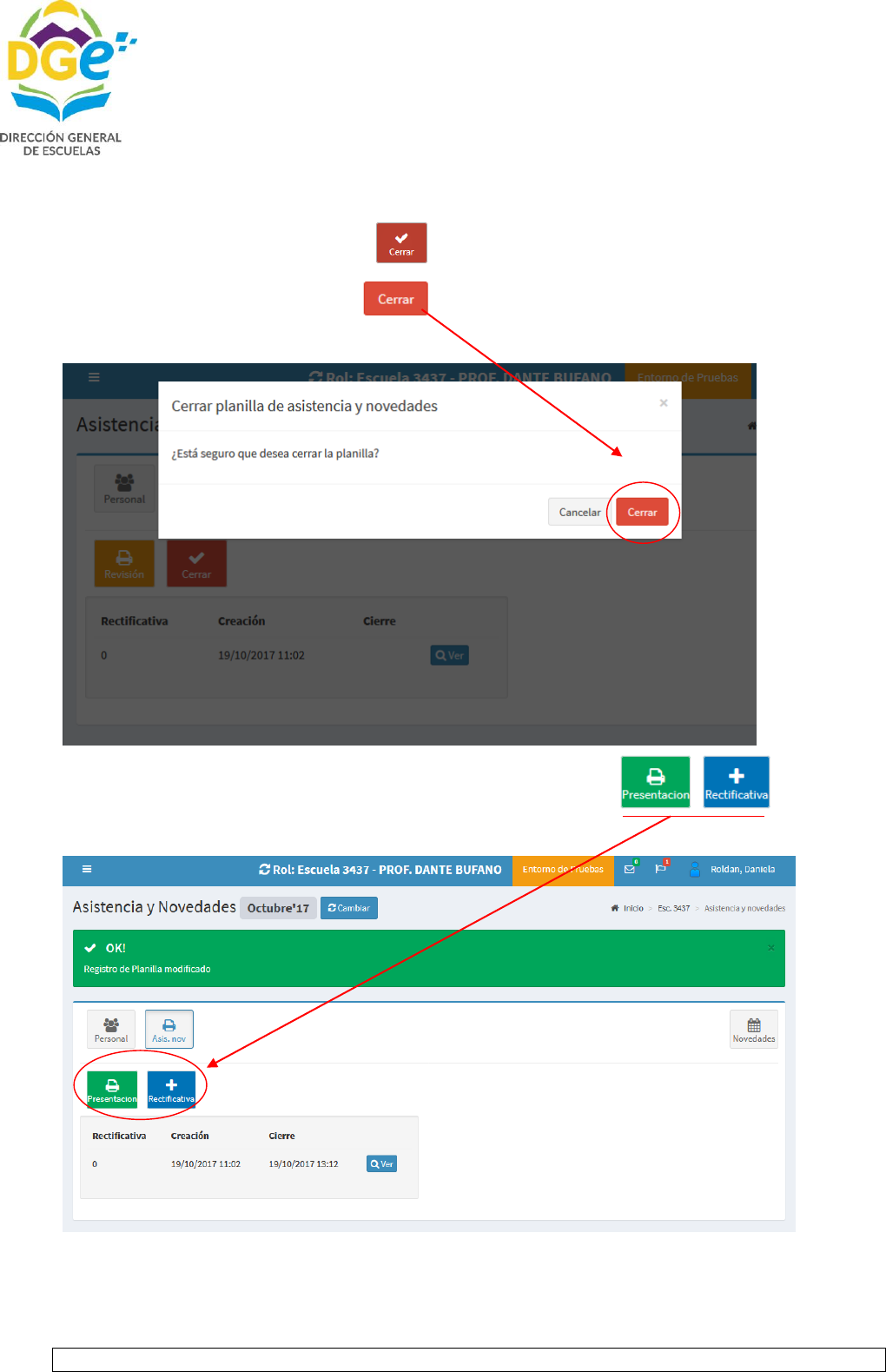 Con la opción podemos rectificar las novedades de la planilla de asistencia, nos pregunta si