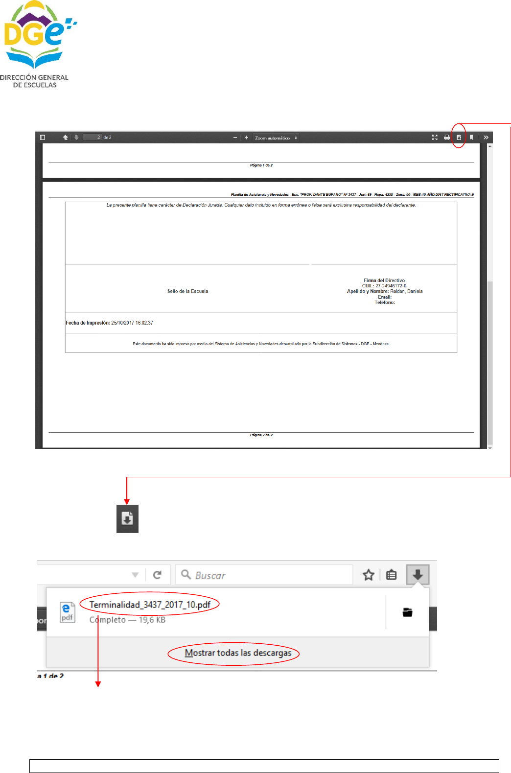Con la opción podremos visualizar y descargar en PDF, la planilla de asistencia definitiva.