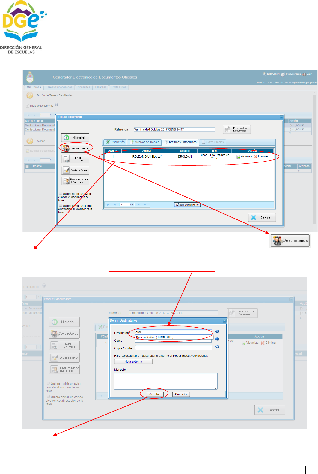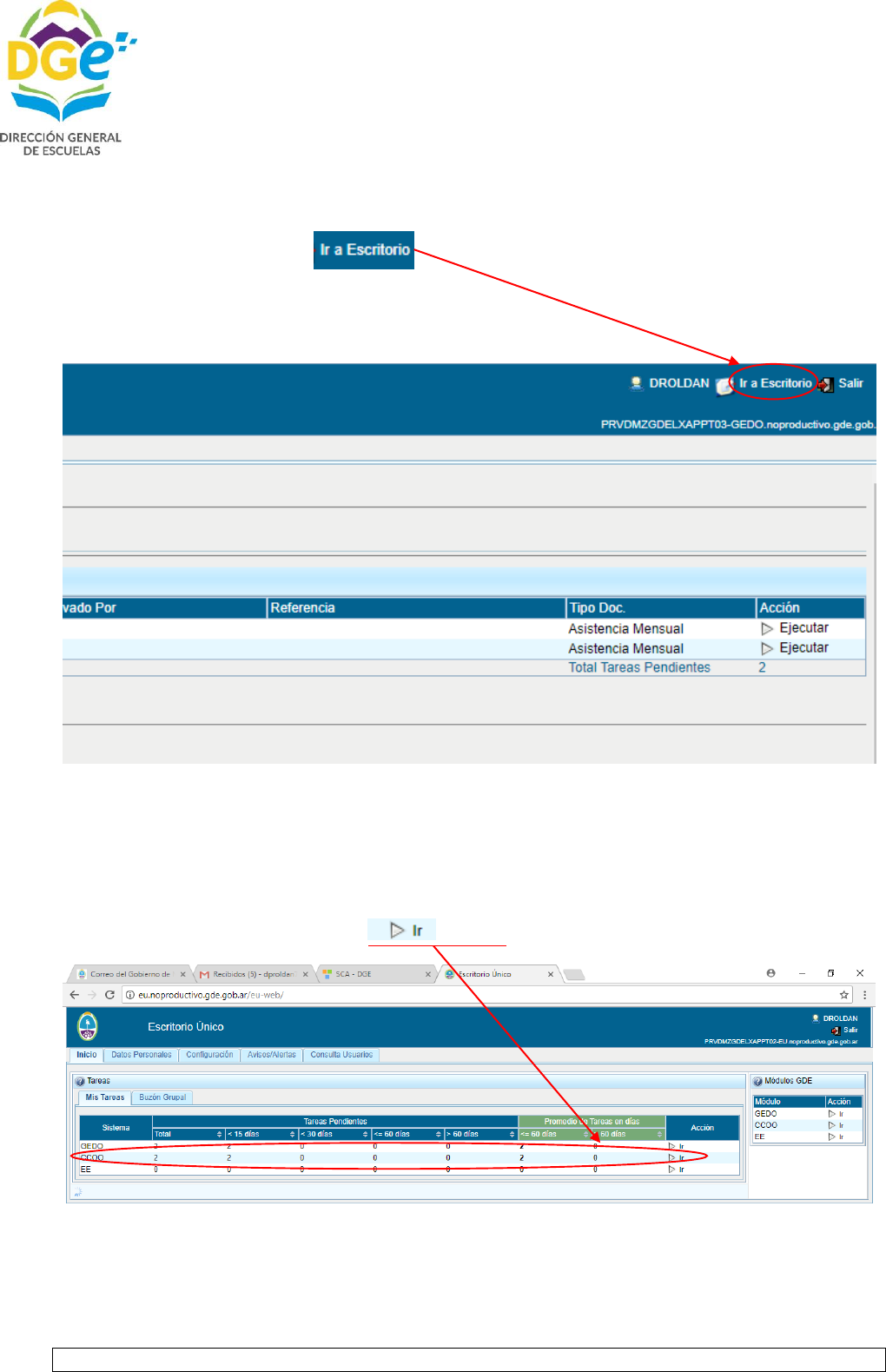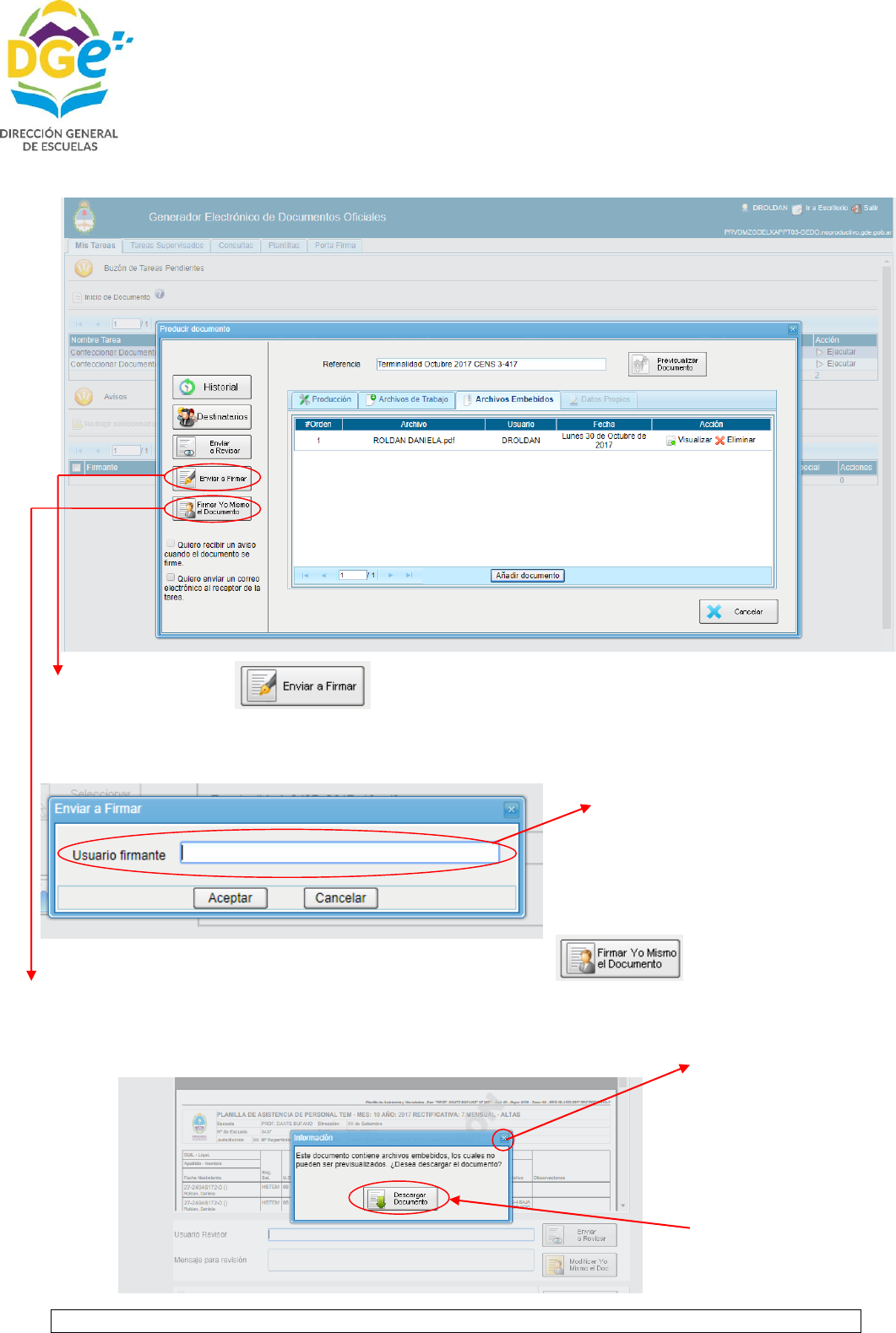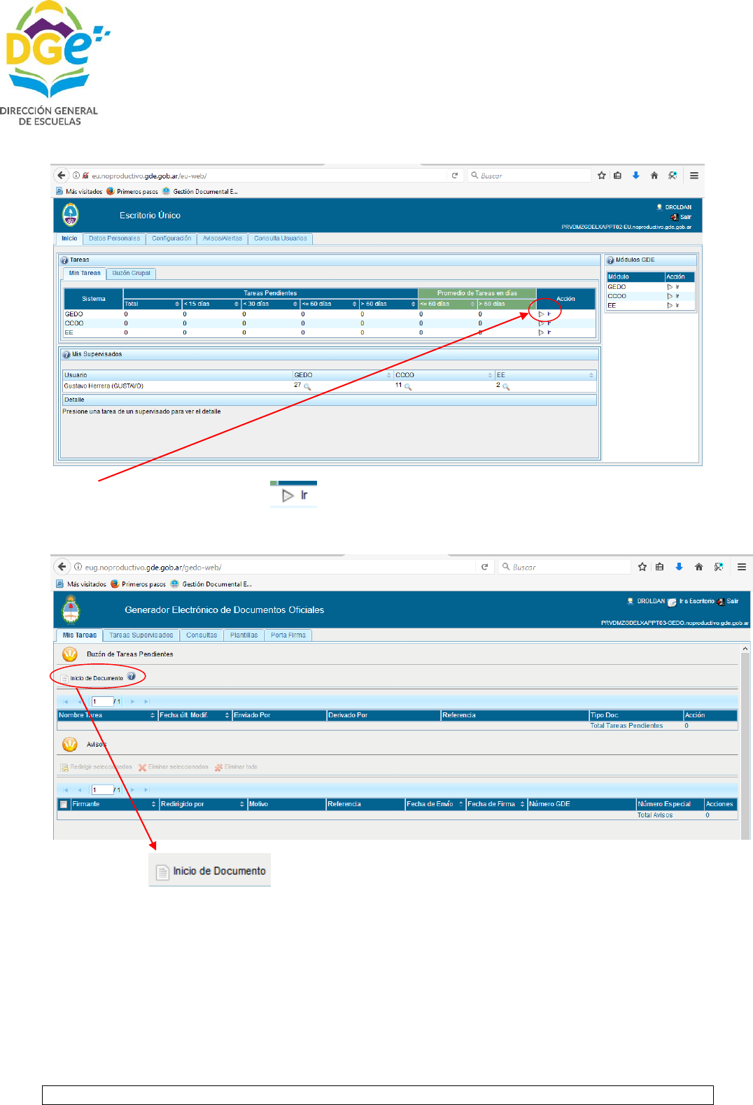 a trabajar en el sistema GDE, para poder enviar la planilla obtenida con la documentación respaldatoria