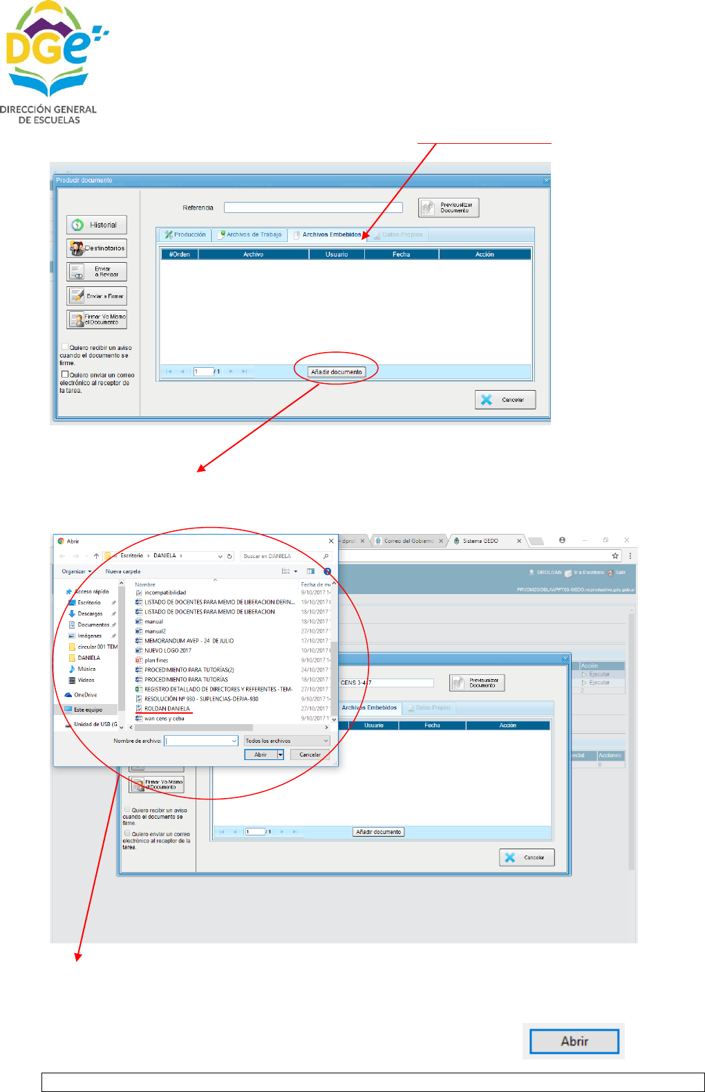 Se abrirá una ventana en donde hay que buscar el archivo PDF, que deseamos adjuntar (con el apellido y