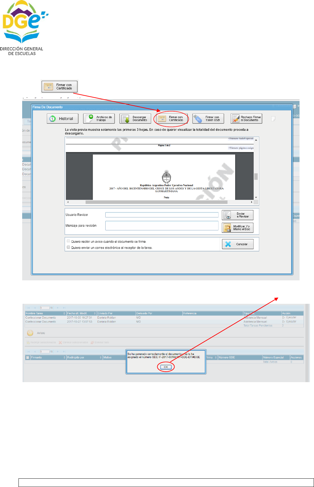 Nos aparece la siguiente pantalla, donde nos informa el número asignado GDE, hacer clic en ok