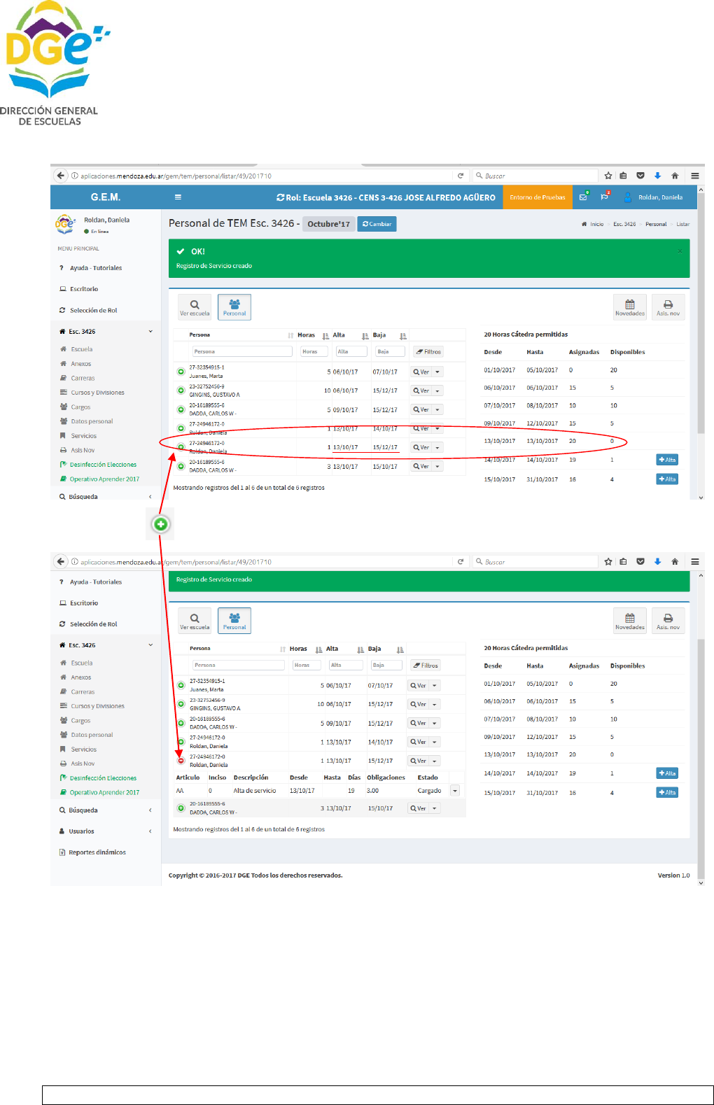 Inmediatamente se agregará a la lista de tutores, indicando fecha de alta y fecha lìmite de baja