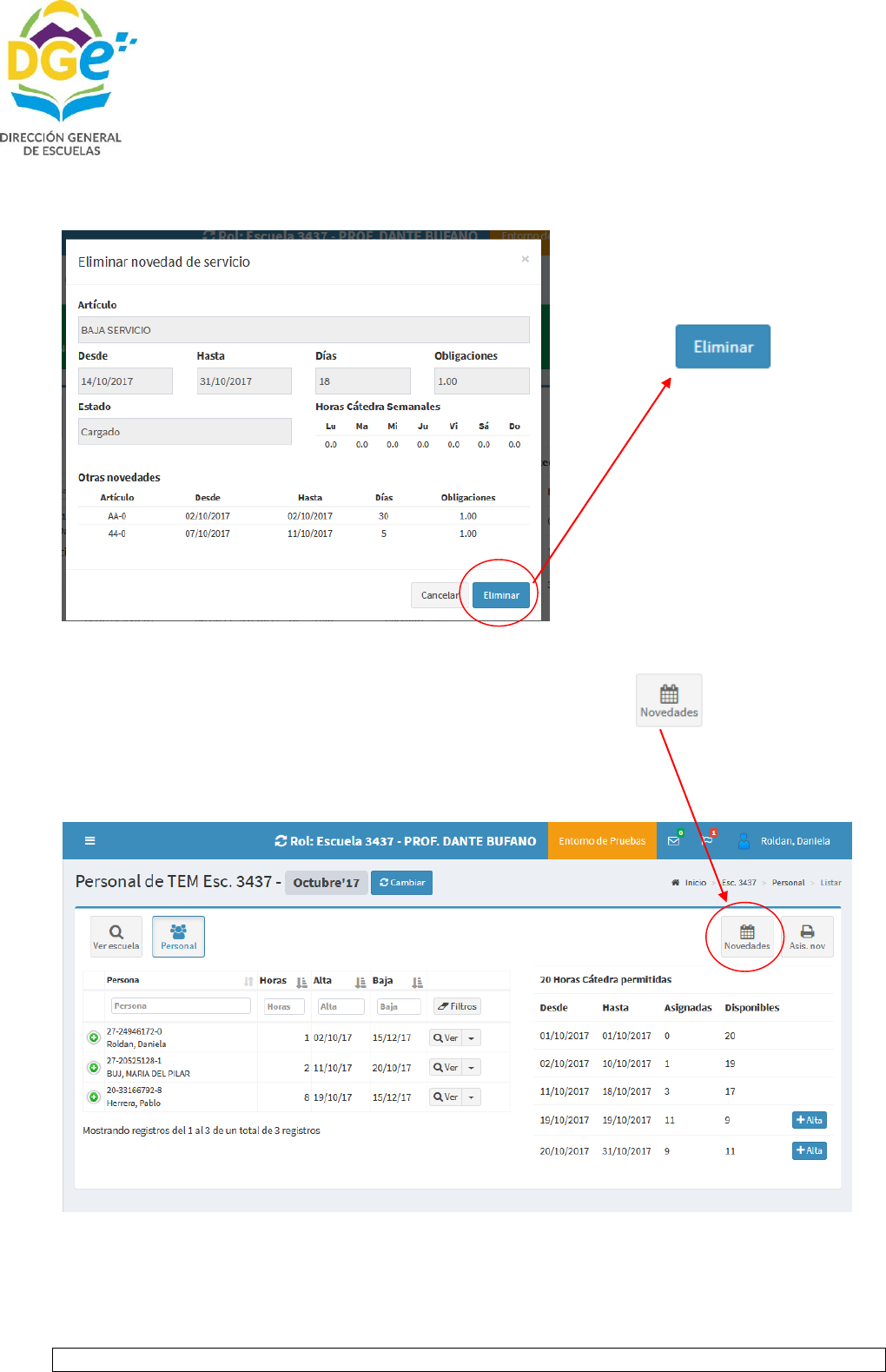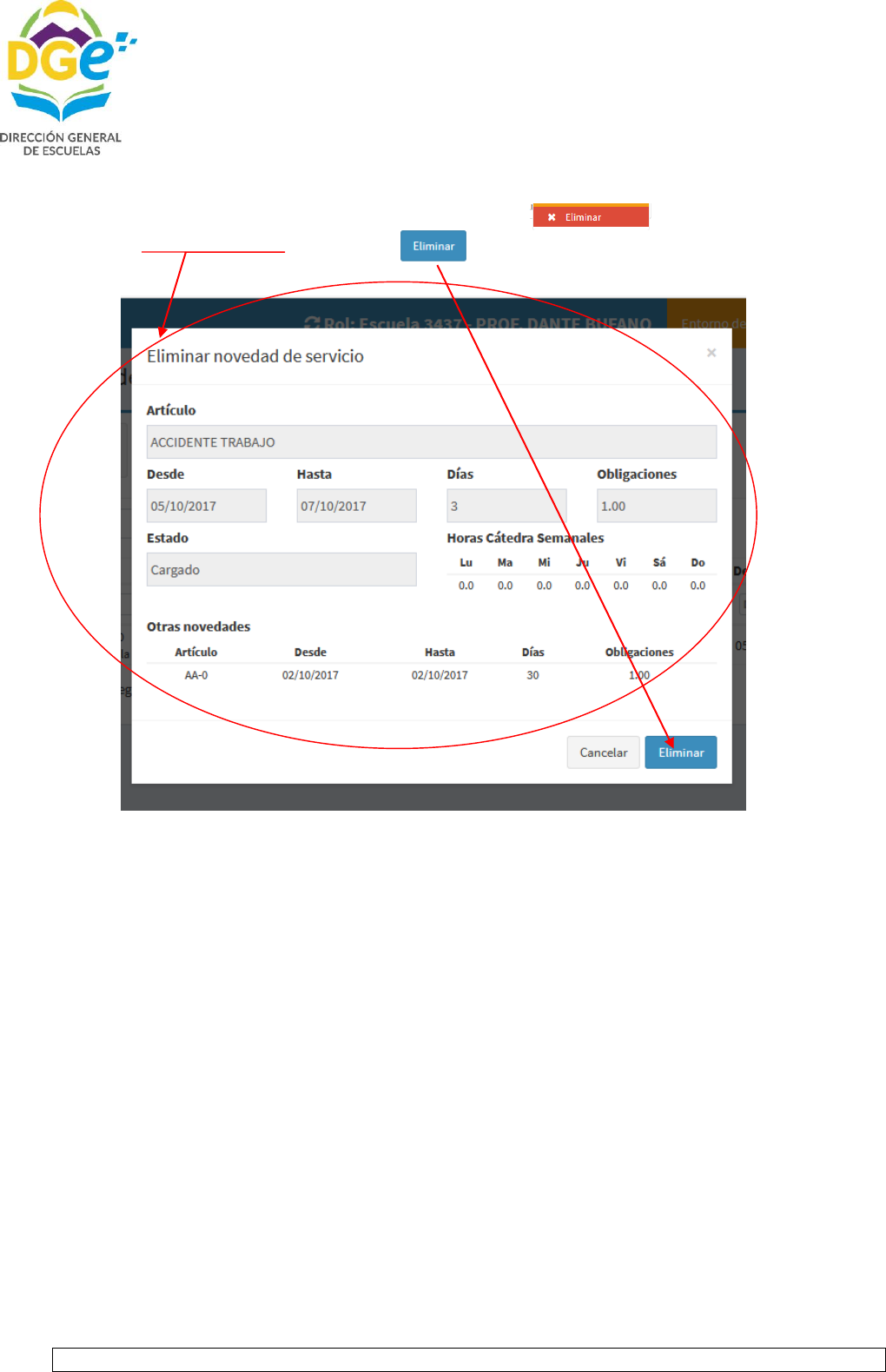 Si desea eliminar la novedad ingresada debe hacer clic en donde le mostrará los
