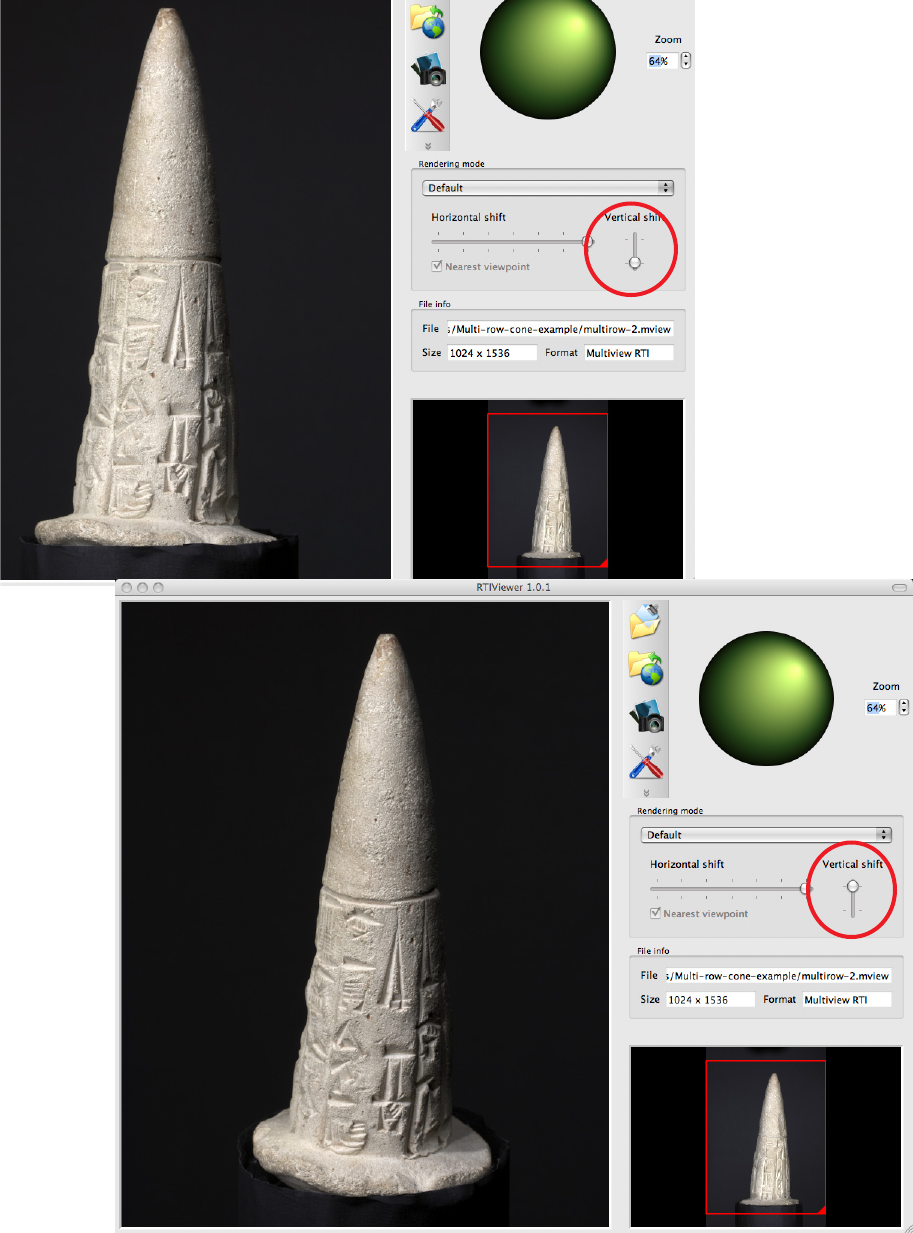 When a Multi-view RTI is captured at more that one latitude, a Vertical shift tool appears to the right of the