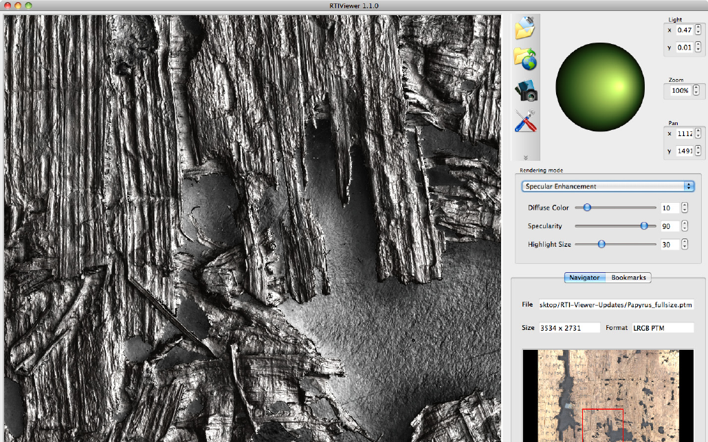 Remote viewing is available only for files in the LRGB PTM and HSH RTI formats. In order to use it, you must