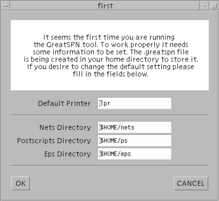 are set at the moment the GreatSPN2.0.2 GUI is launched for the first time: a window pops-up in which it is