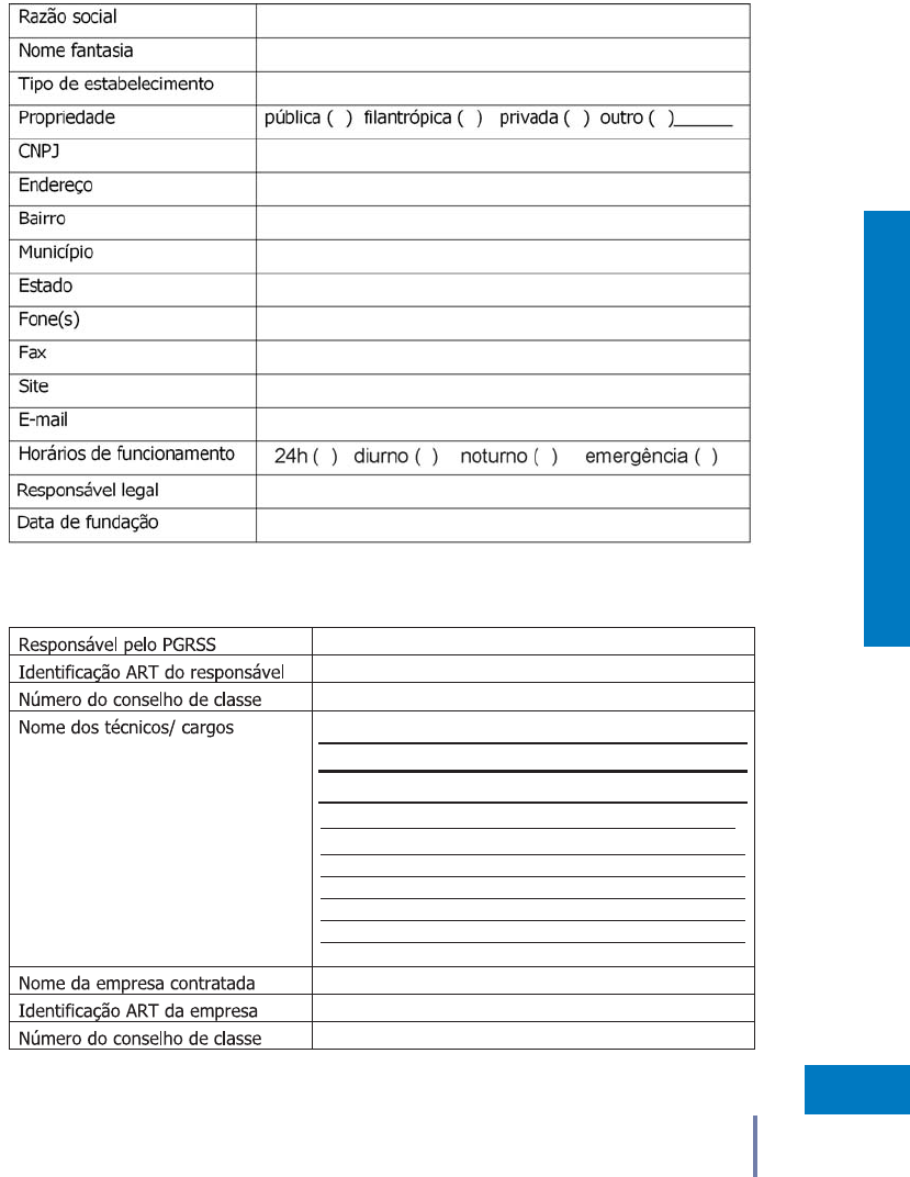 Sugestões para registro das informações necessárias para o PGRSS . . . . . . . . . . .87