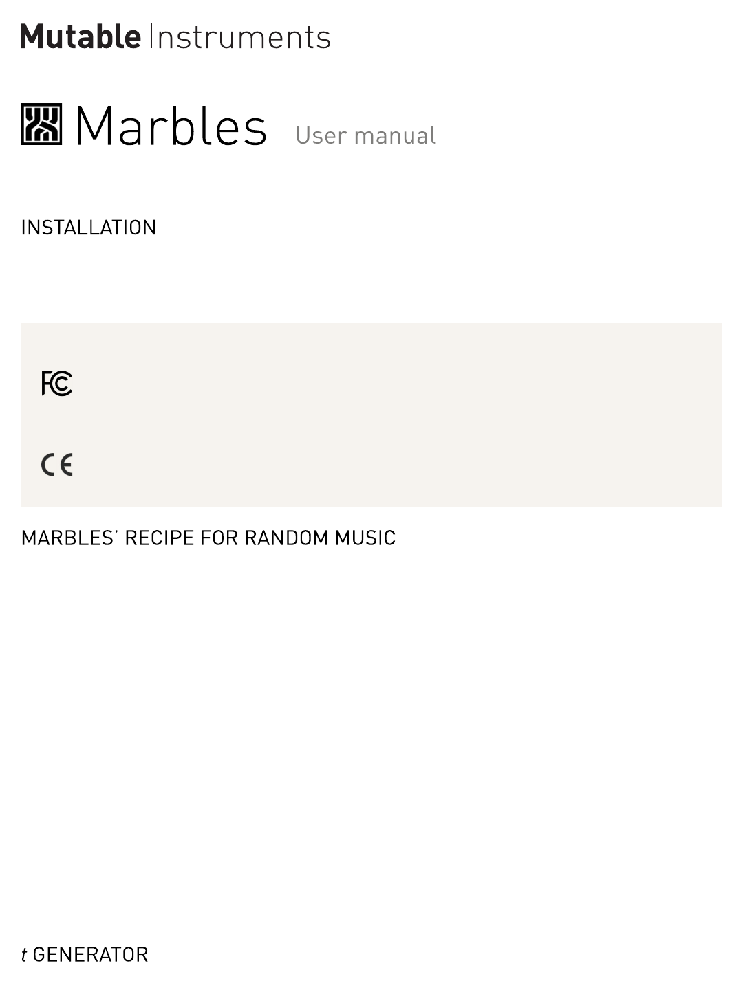 User Manual: Pdf Mutable Instruments Marbles User Manual Mutable Instruments - Marbles - User Manual