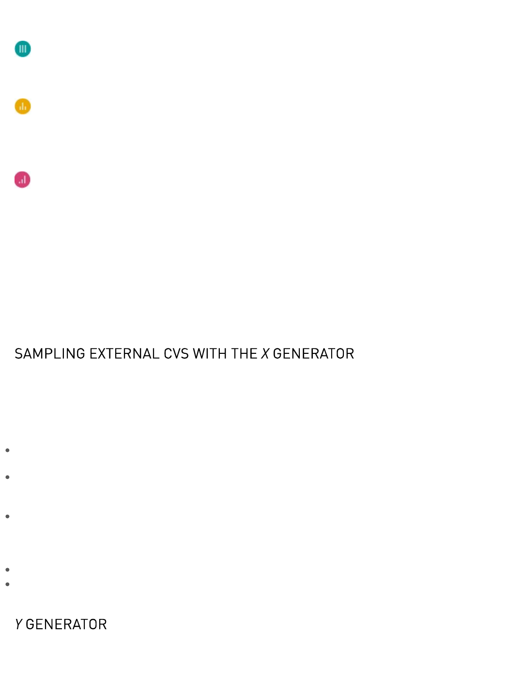 The X generator generates three independent random voltages output on X1, X2 and X3. They are