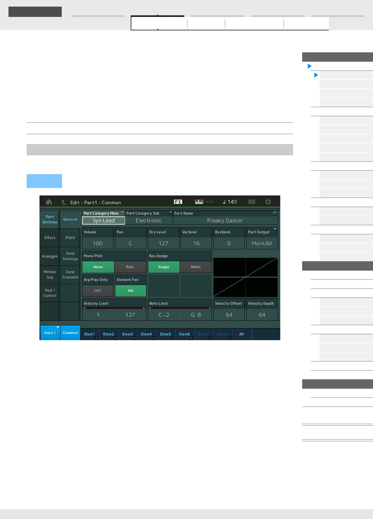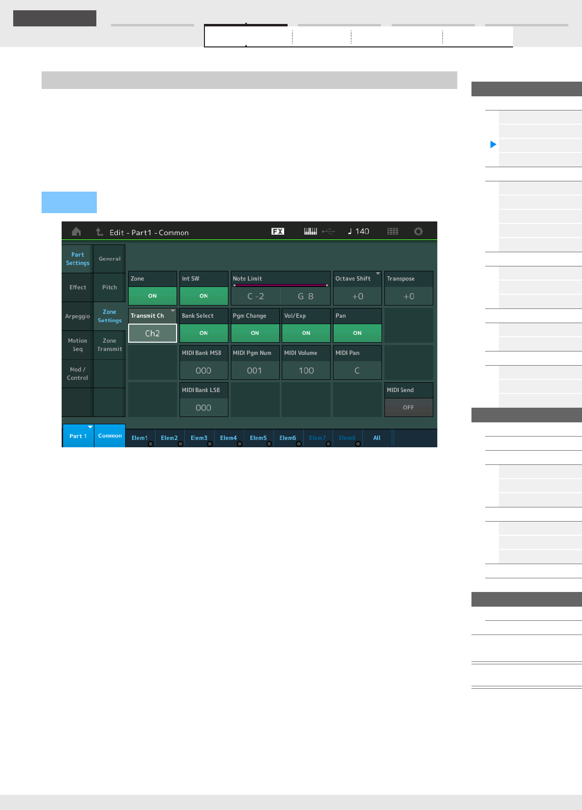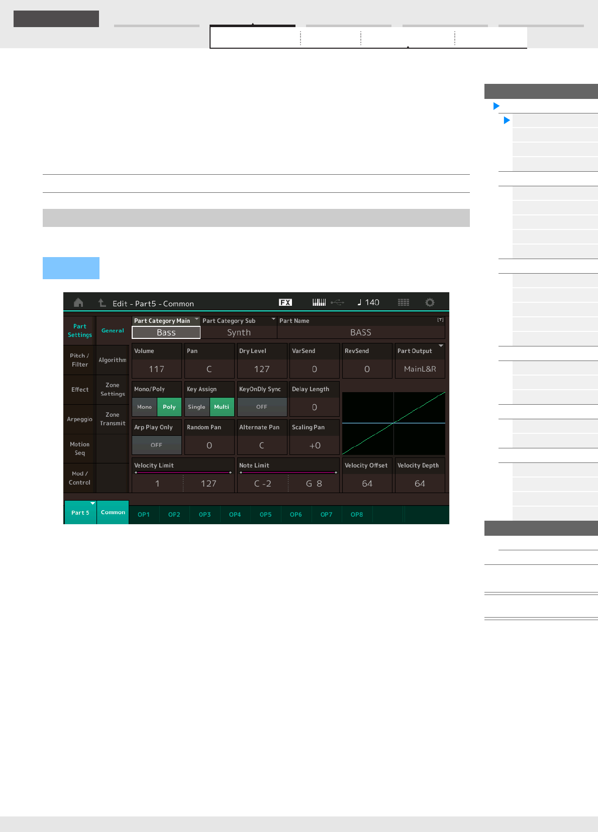 Explains the Part parameters, effect types, effect parameters, and MIDI messages that are used for synthesizers incorporating